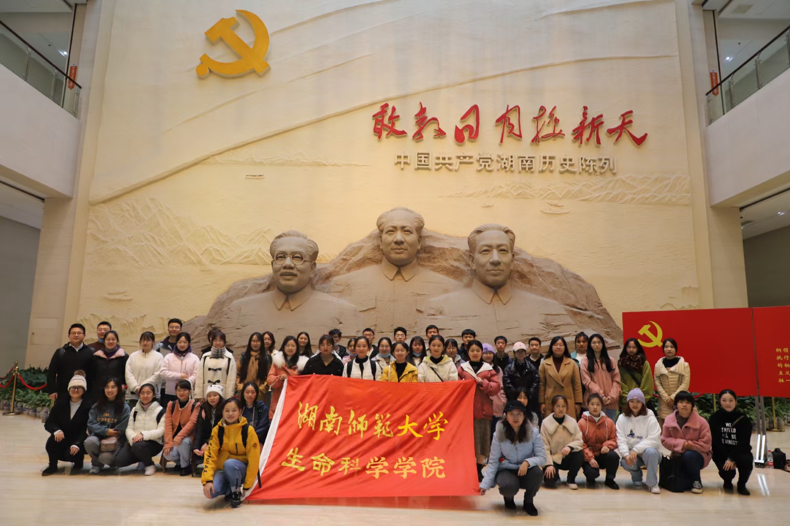 2020年11月22日,生科院本科生党支部赴湖南党史陈列馆开展本学期第一次线下主题党日活动暨预备党员入党宣誓仪式。公司学工办副主任杨卓、团委书记赵志浩、党支部书记王洋、李翠玲以及本科生党支部49名员工党员参与此次活动。