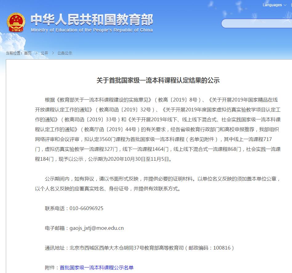 今日,公司邓学建教授课程团队的“中国鸟禽文化”、袁婺洲教授课程团队的“转基因的科学——基因工程”课程获教育部首批国家级一流本科课程认定结果公示,再次彰显了公司本科教学建设取得的丰硕成果。http://www.moe.gov.cn/jyb_xxgk/s5743/s5745/A08/202010/t20201030_497422.html