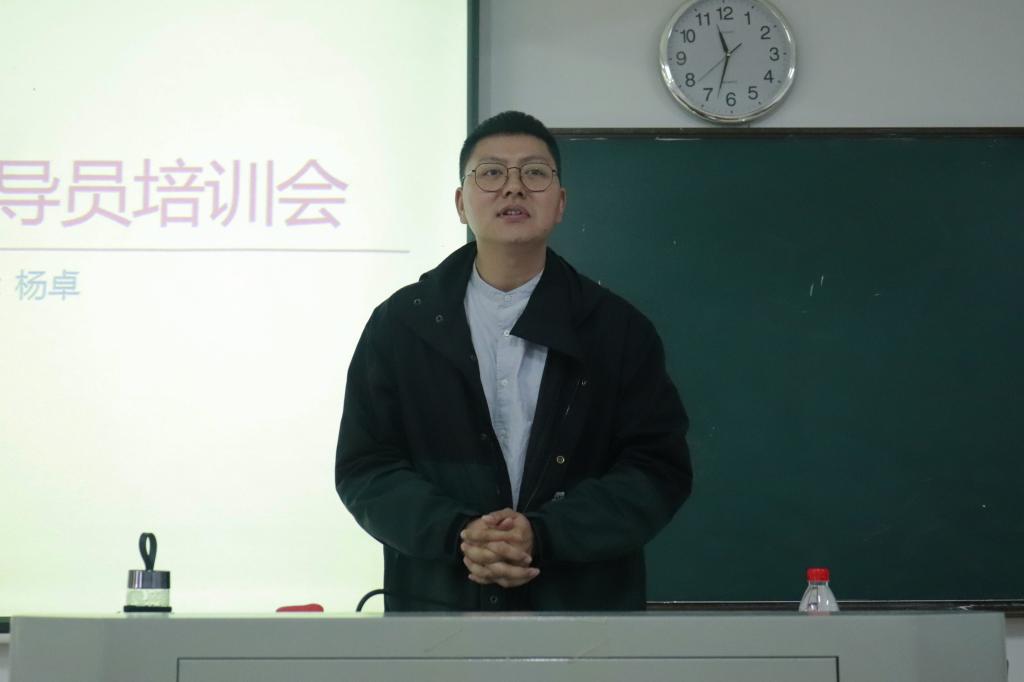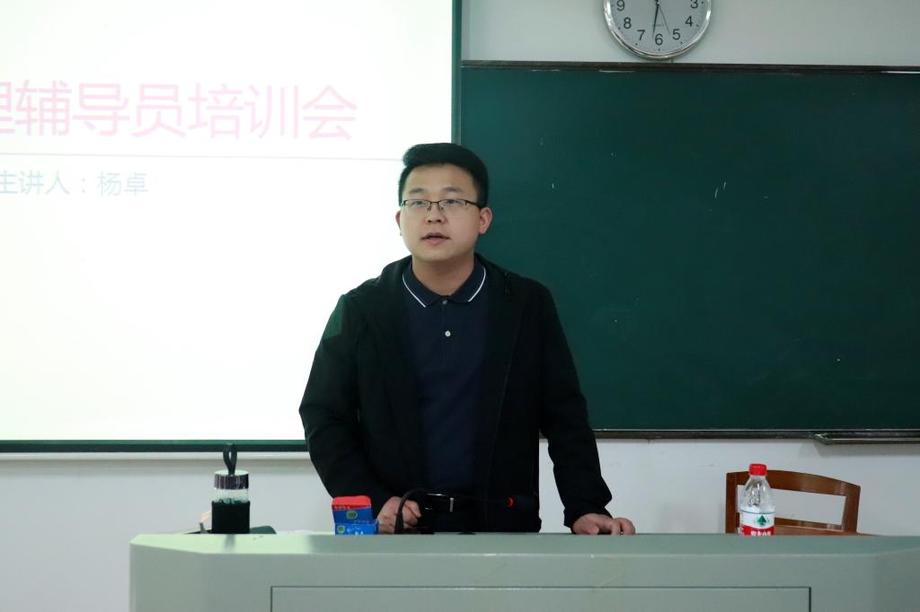 接下来,杨卓分别从什么是朋辈心理互助、如何帮助同学解决生活中的情绪抚育等几个方面,向同学们讲解朋辈心理辅导员的工作内容、工作态度和工作原则。他希望所有朋辈心理辅导员能多关注身边同学的心理状态,及时为心理需要关怀的同学提供帮助,并加强与辅导员之间的交流反馈。