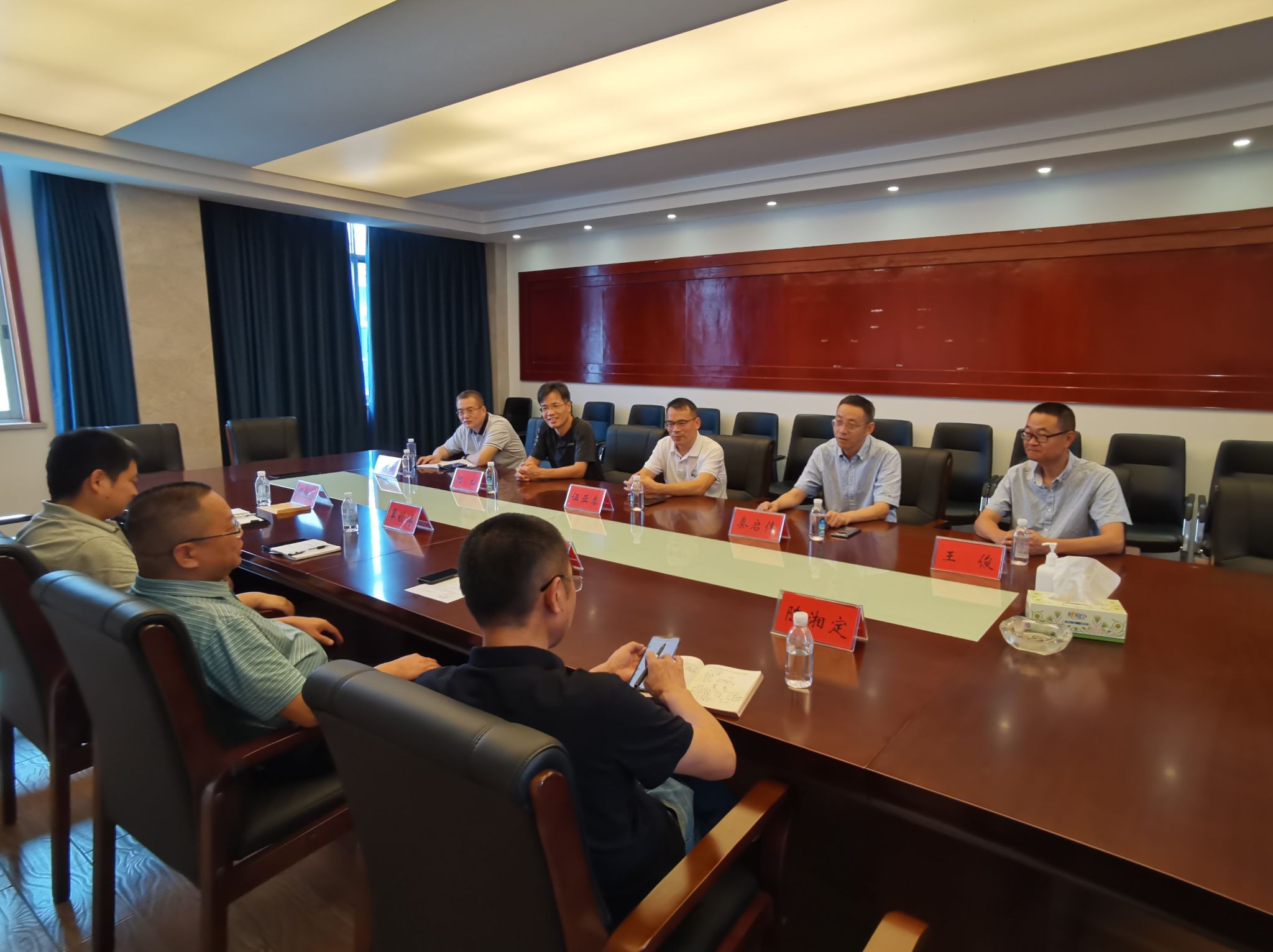 5月29日上午,华南农业大学海洋公司党委书记伍亚泰、经理秦启伟、副经理柯松、党委委员王俊、华农渔业研究院常务副经理赵会宏一行来公司交流座谈调研。公司党委书记谢罗庚、湖南省生物研究所所长覃钦博、公司副经理陈湘定、胡胜标陪同调研。