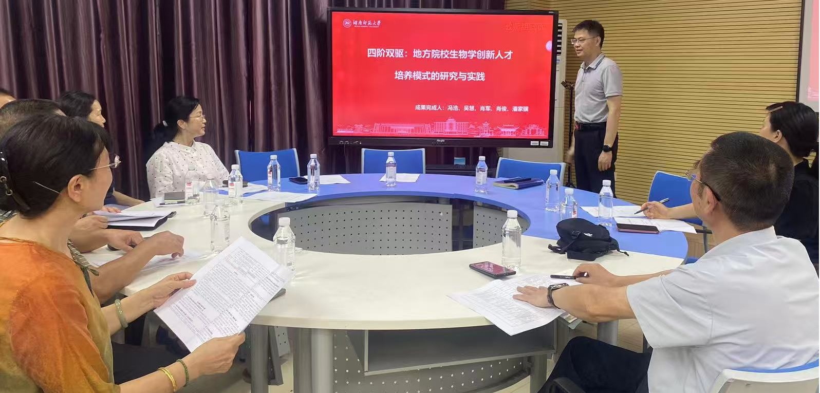 在研讨环节,冯浩教授、戴国副教授、杨焕胜教授分别汇报了各自团队教学成果的主要内容、取得的成绩以及存在的问题。与会领导和专家认真听取成果汇报后,结合自身的经验和评审角度,对成果选题、成果概述、创新点凝练、支撑材料整合等方面进行了点评和指导,对申报材料的进一步修改提出了意见和建议。