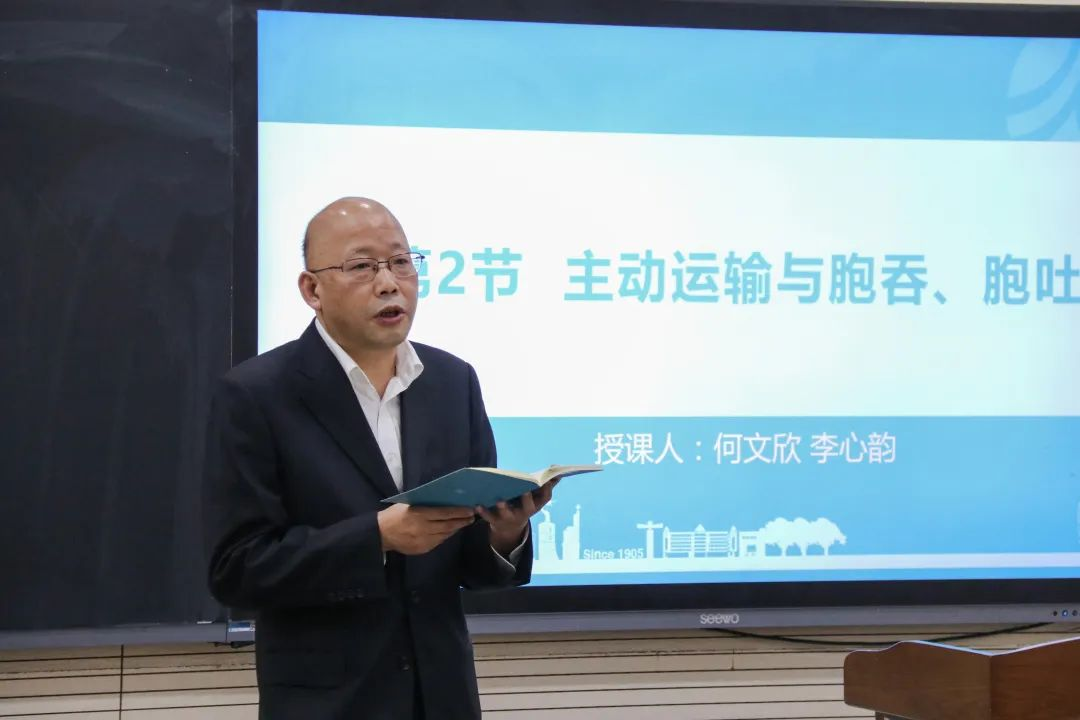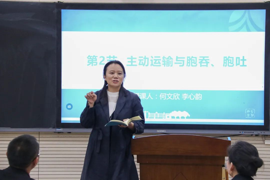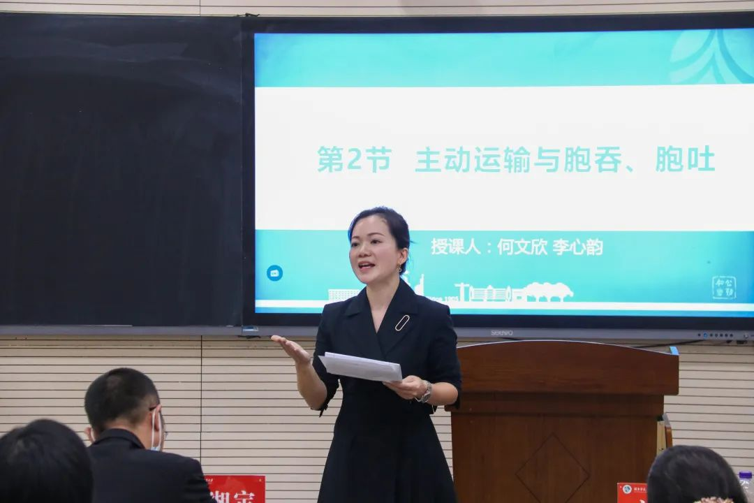 11月3日,实习老师何文欣、李心韵主讲的汇报课《主动运输与胞吞、胞吐》于师大附中惟一楼一楼东第一多功能厅顺利开展。为深入了解师范生实习情况,beats365官方网站组织专项工作组赴师大附中关心慰问实习老师,并联合师大附中教研组对实习队各项工作进行了检查。湖南师大生科公司党委书记谢罗庚、教学副经理陈湘定、生科院专任教师戴国、外国语公司副经理刘白、历史文化公司副经理徐良利、美术公司党委副书记莫南、教师教育公司教管科科长谢燕、候会丽老师、师大附中科技创新中心副主任黄俊、教学指导委员会主任汪训贤、学术委员会委员李尚斌、生物教研组组长杨群英、副组长朱昌明莅临现场指导,附中生物组教师及全体实习老师参与。