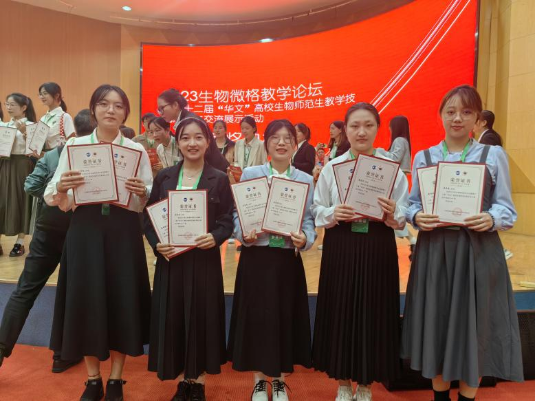 “华文”全国高校生物师范生教学技能测试与交流展示活动是目前国内生物科学(师范)专业规模最大、参与高校最多的教学技能展示活动,旨在为师范生提供教学技能训练和展示平台,为各大师范院校提供教师职业技能训练交流平台,助力提升师范生教学技能水平,促进教师教育发展。本次活动有来自北京师范大学、华中师范大学、东北师范大学等全国80所院校的143名老师与446名员工参与,比赛设置一等奖、二等奖、三等奖和优秀奖。