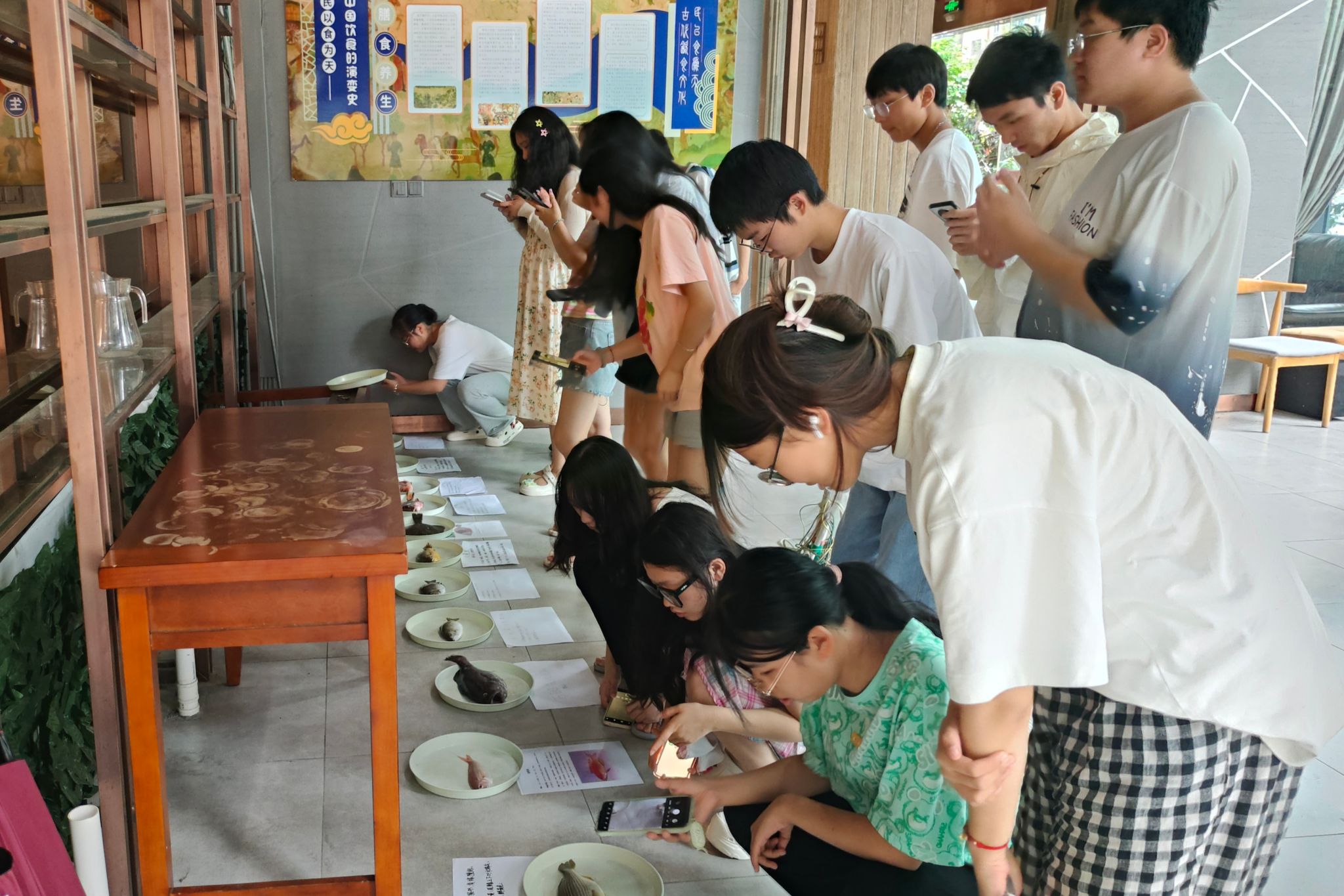 同学们观察记录鱼类标本