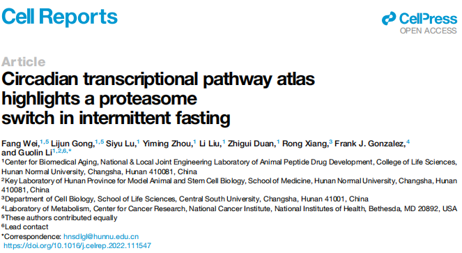 北京时间2022年10月25日晚23时,Cell Reports在线发表了beats365官方网站李国林团队的最新研究成果——“Circadian transcriptional pathway atlas highlights a proteasome switch in intermittent fasting”。