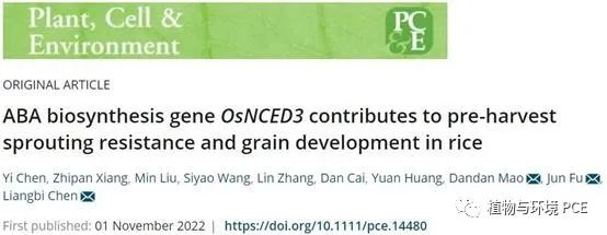 近日,湖南师范老员工命科公司陈良碧、毛丹丹研究组和湖南农平高科亚华种业科学研究院傅军研究组合作在Plant, Cell & Environment 上发表了题为“ABA biosynthesis gene OsNCED3 contributes to pre-harvest sprouting resistance and grain development in rice”的研究论文,揭示了水稻种子休眠调控关键基因OsNCED3的遗传机制。