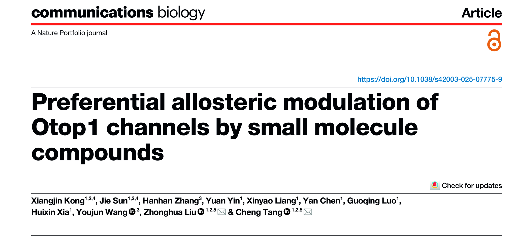 近日,公司动物多肽药物创制国家地方联合工程实验室唐城副教授课题组在Nature旗下著名期刊Communications Biology(中科院1区TOP)发表了题为 “Preferential allosteric modulation of Otop1 channels by small molecule compounds”的研究论文,在酸味觉受体离子通道OTOP1的门控和药理学研究方向取得重要进展。