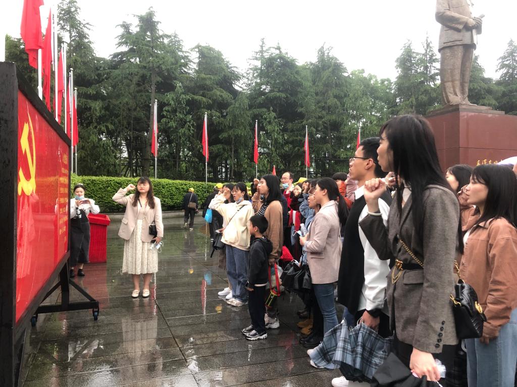 在韶山毛泽东铜像广场,18级生物工程牟琪带领所有党员重温入党誓词,每位党员都用发自内心的声音抒发了对党忠诚的决心,面对党旗,大家接受了一次身心的特殊洗礼。宣誓过后,党员们依次参观了毛泽东纪念馆,刘少奇纪念馆,刘少奇故居等场所,大家在一张张历史照片、一件件历史文物、一段段影视资料,身临其境,重温了两位同志的成长之路,深入了解一代伟人普通而又不平凡的一生。