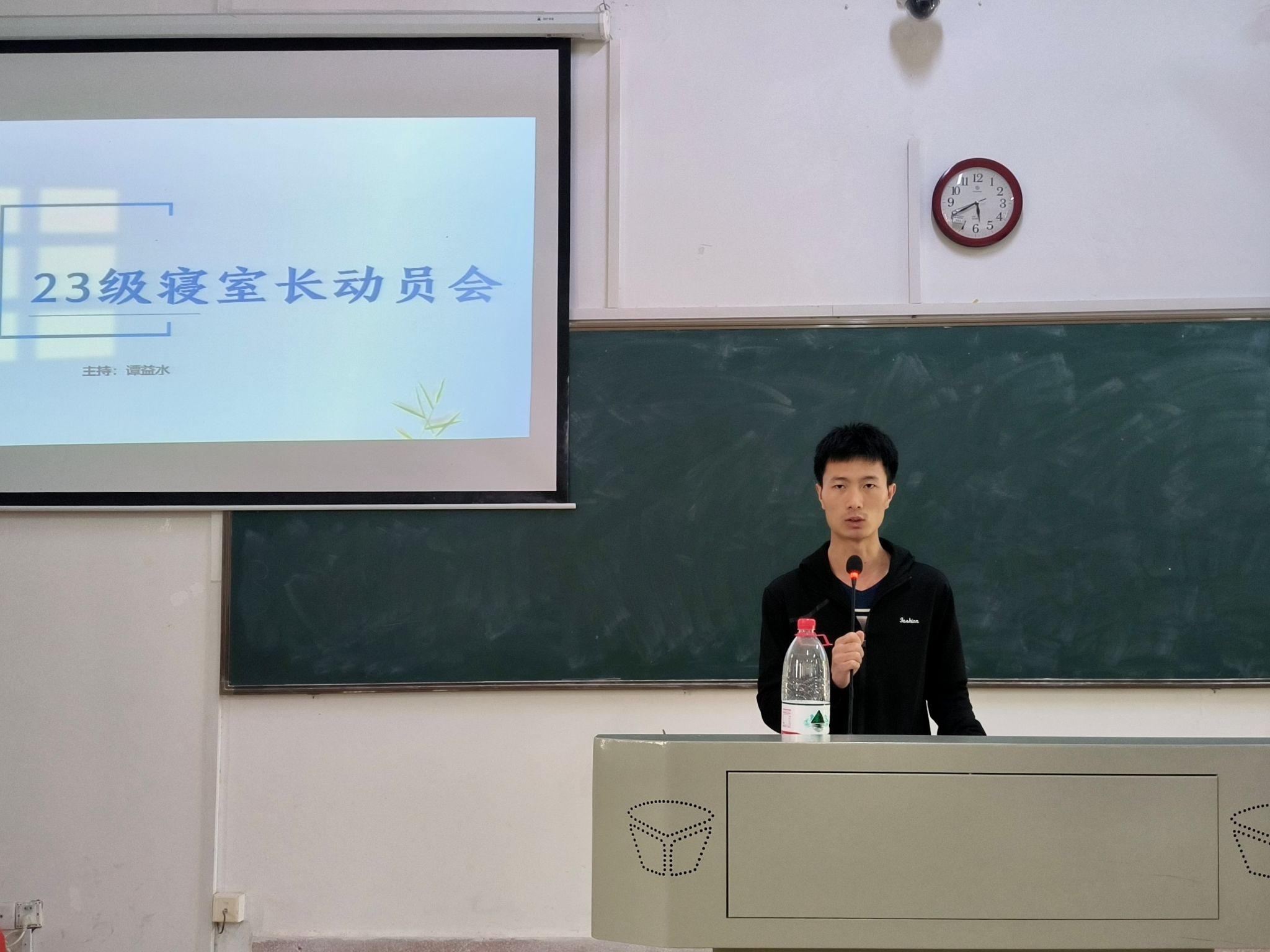 吴晴从内务卫生、归寝纪律、学习氛围、宿舍安全等方面对寝室常规管理提出了具体要求,明确寝室长的职责,强调他们在维护宿舍秩序、促进室友和谐中发挥着关键作用。同时她对部分寝室的文化建设成效表达肯定,并希望全体同学携手并进、共同努力,为宿舍文明建设贡献自己的一份力量。谭益水阐述了有关查寝卫生标准、物品摆放要求的内容,列举在院检和校检中出现的典型问题,并提出后续改善寝室环境的相关措施。吴淞霖向寝室长们介绍了寝室文化建设比赛的核心任务,为充分展现生科院的寝室文化建设成果,她表示希望寝室长们能带动寝室各成员积极参与,进一步理解寝室文化建设的重要性。段咏乐向大家展示了一些往届寝室文化建设比赛的优秀作品照片,分享创意照片和视频实例,并说明创作思路与流程,以方便同学们开展寝室建设工作。