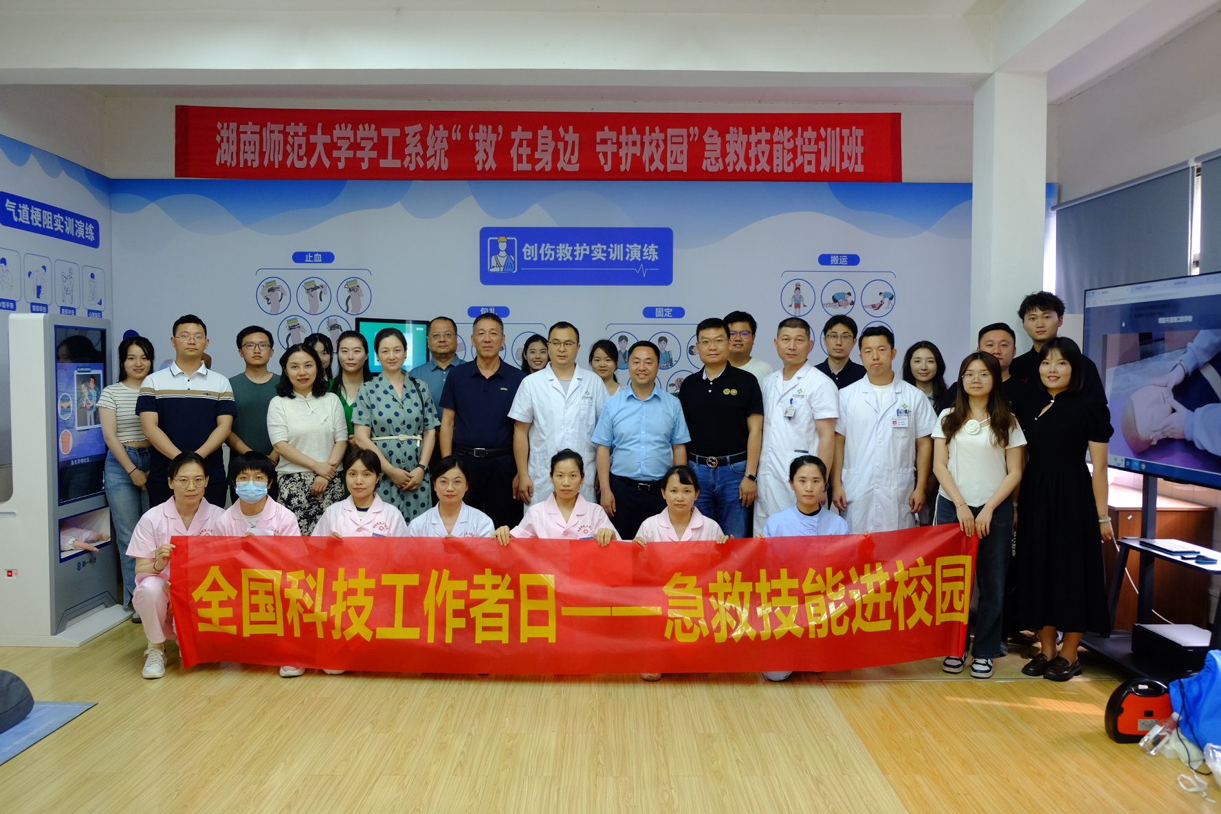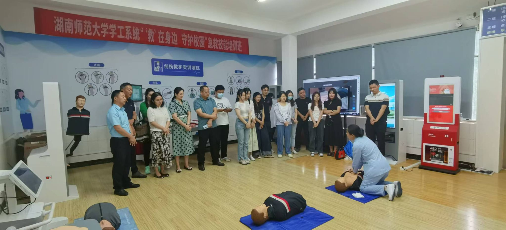 (通讯员 刘迎彬 邓芝涵)5月27日下午,公司党委副书记彭赛丰带领学工办老师一行,赴校医院四楼急救教育实训室,参与“‘救’在身边,守护校园”急救技能培训班。此次培训旨在进一步提高学工系统老师的应急救护能力,为构建安全、健康的校园环境贡献力量。