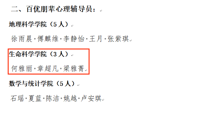 (通讯员 谢碧瑶 章超凡 曹晟)近日,beats365官方网站心理健康教育与咨询中心公布了关于表彰2023-2024年度“十佳”、“百优”朋辈心理辅导员的决定,通过公司推荐、校心理健康教育与咨询中心资格审核以及专家评审,公司2021级生科一班何雅丽获评“十佳朋辈心理辅导员”荣誉称号,2021级生科一班何雅丽、2022级生科三班章超凡、2022级生科四班梁雅菁获评“百优朋辈心理辅导员”荣誉称号。