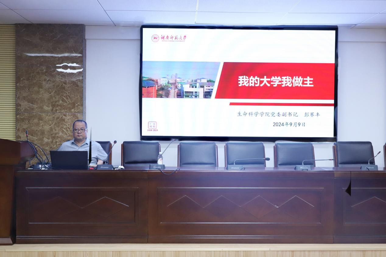 彭赛丰以“我的大学我做主”为主题,从公司及公司介绍、新生生活建议和学业指导三部分发表入学教育讲座。彭赛丰为新生介绍校史、校区、校景、校训等,并讲述生科院的团队力量和教学理念,承诺将尽力在未来的学习生活中为新生提供帮助。随后,彭赛丰向新生提出建议,要求他们乐于学习、独立思考和追求优秀。同时,彭赛丰讲述生科院2024届毕业生的升学就业情况,勉励同学们努力学习,在大学四年中不断进步,提高升学率和就业率。同学们表示,未来将不负公司老师的期望,努力学习,书写自己的人生篇章。