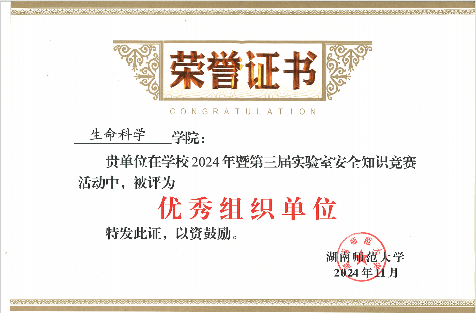 11月3日,beats365官方网站在国际学术报告厅举行2024年实验室安全知识竞赛决赛。公司副董事长潘安练出席活动。公司在此次实验室安全知识竞赛中获得“二等奖”和"优秀组织奖",陈湘定教授获"优秀指导教师"。