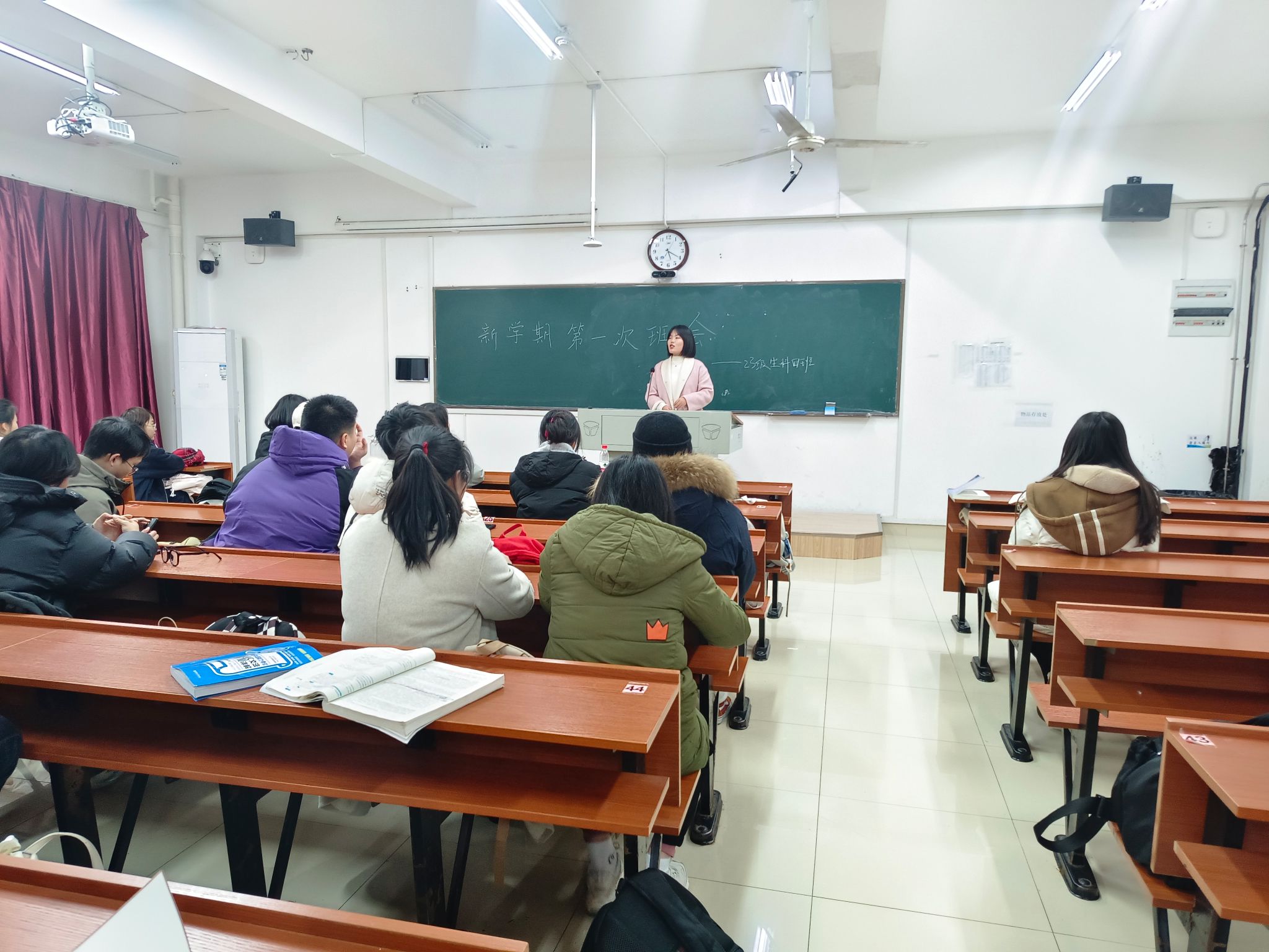 班会上,班长、团支书、学习委员等班委针对上一学期班级在各项活动中的表现进行了全面总结,肯定了同学们在学习和集体活动中的积极参与,同时也指出了班级在纪律和学习氛围方面存在的不足,班委们鼓励大家更好地应对学业挑战,提高学习成绩,提升班级凝聚力。