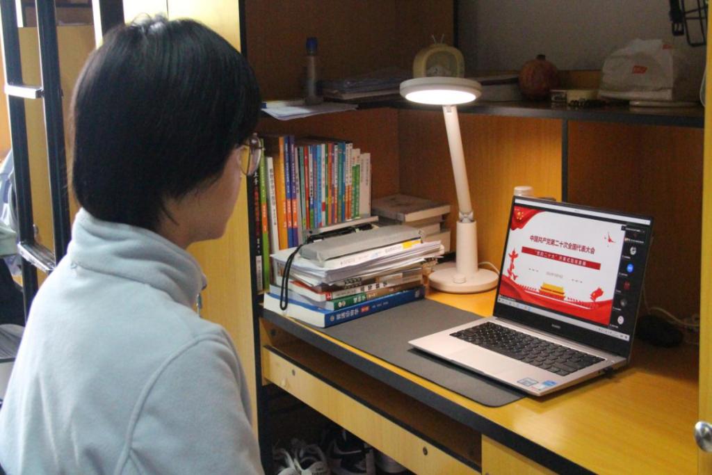 员工观看二十大线上讲解会议