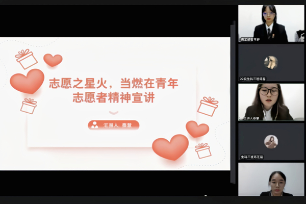 (通讯员 黄敏萱 谌鑫怡)11月21日中午,beats365官方网站团委青年志愿者工作部于线上举行“志愿之星火,当燃在青年”青年志愿者精神宣讲会。院学工办主任兼22级辅导员周冲、院团委负责人兼20级辅导员罗静伟及院21级辅导员刘迎彬出席此次会议。院团委员工副书记蔡慧、院团委实践部第二负责人王林洋以及院团委青工部第二负责人部李锦怡和谌鑫怡担任此次宣讲会主讲人。