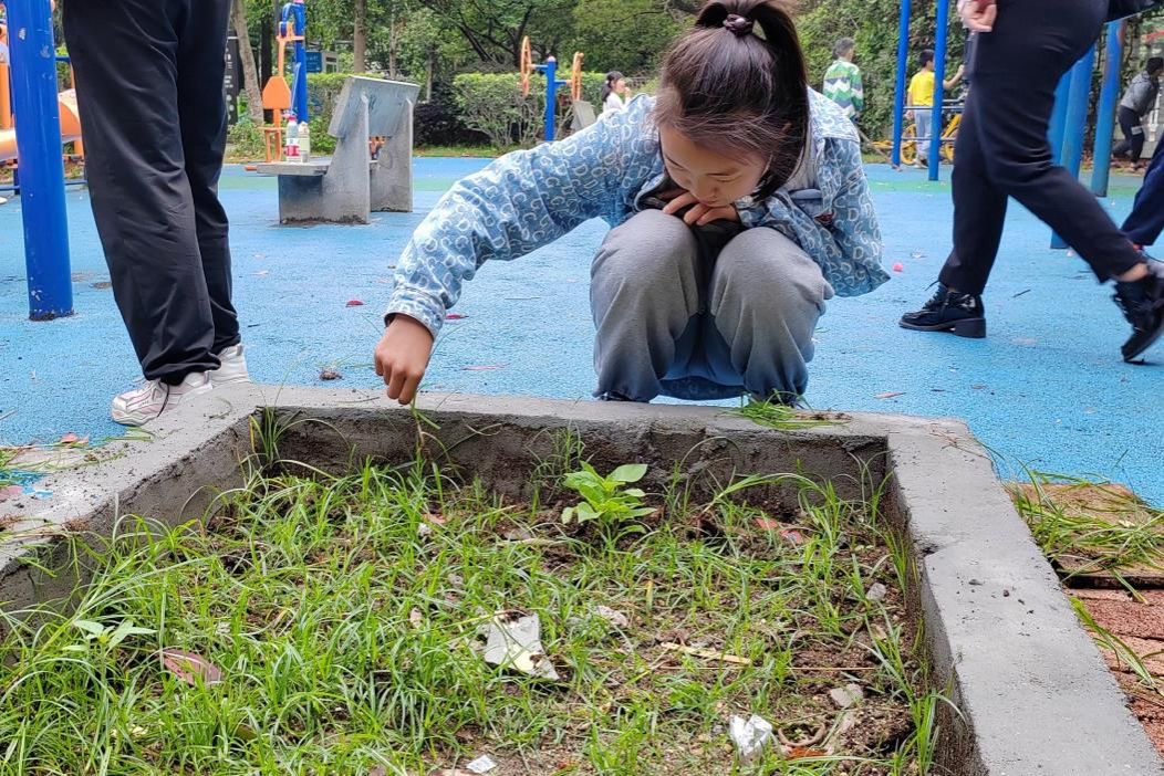 此次活动由讲解向日葵知识、辨别向日葵幼苗以及清理杂草三部分组成。朱婉莹为小朋友讲解向日葵的形态特征和生活习性,着重讲解了向日葵朝着太阳转动的原因,并介绍了与向日葵相关的艺术作品《花瓶里的十五朵向日葵》。小朋友们来到社区花园辨别向日葵幼苗,在志愿者的协助下清理了影响向日葵生长的杂草。活动结束后,志愿者和小朋友们进行合影留念。