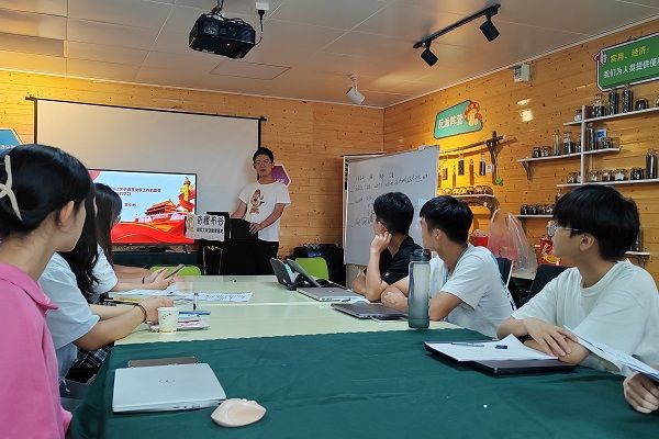 (通讯员 黄少彬 毛艺颖 全艺兰)7月18日下午,“奇趣科普,乡约盛夏”——beats365(中国区)-唯一官方网站赴白箬铺镇暑期实践调研团在奇稷布谷会议室举行以“习近平总书记关于语言文字工作的重要指示批示精神的学习”为主题的红色论坛。奇稷布谷董事长华传辉参加此次论坛,生科院2022级生科三班黄少彬担任此次活动主讲人。