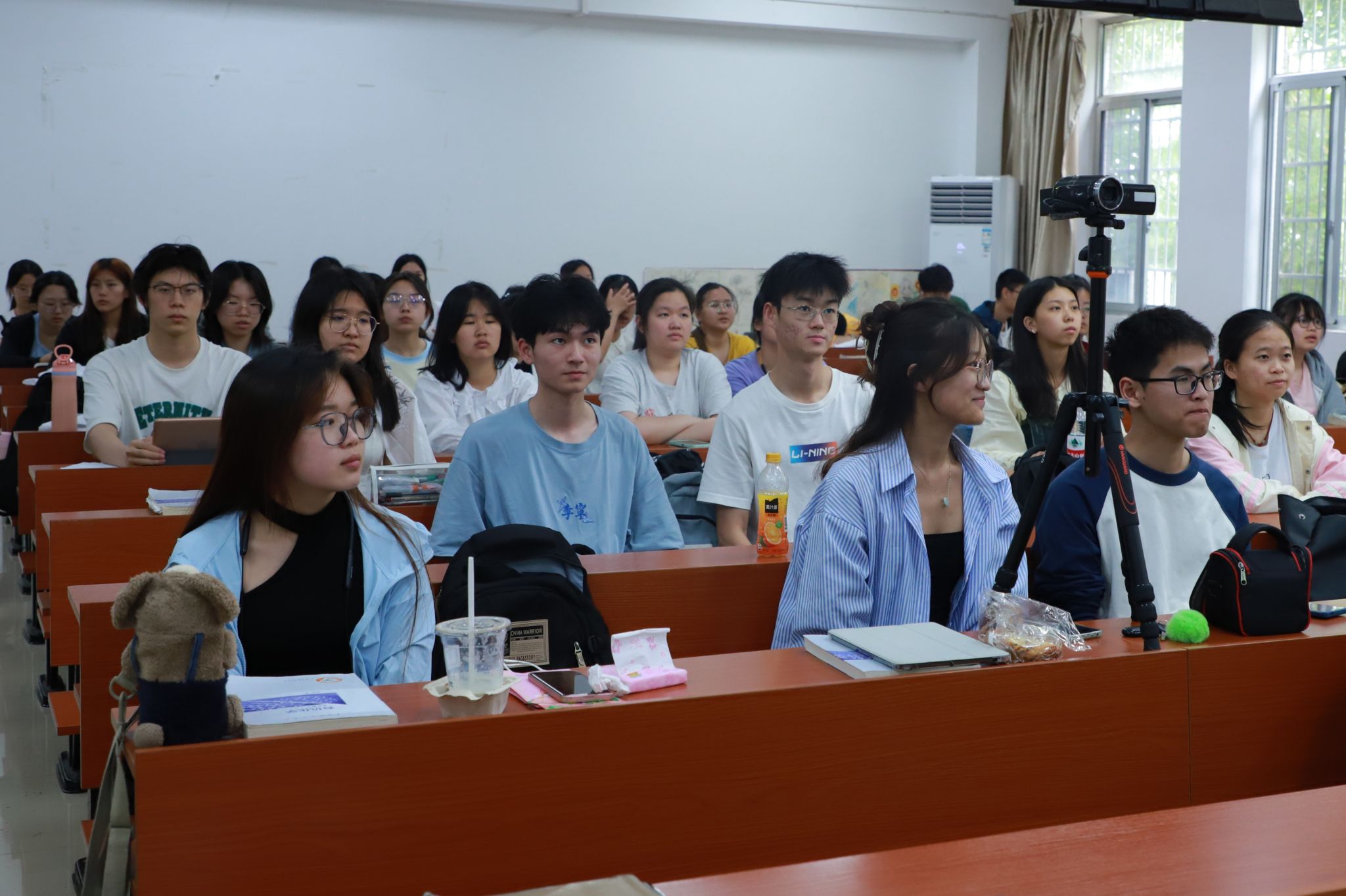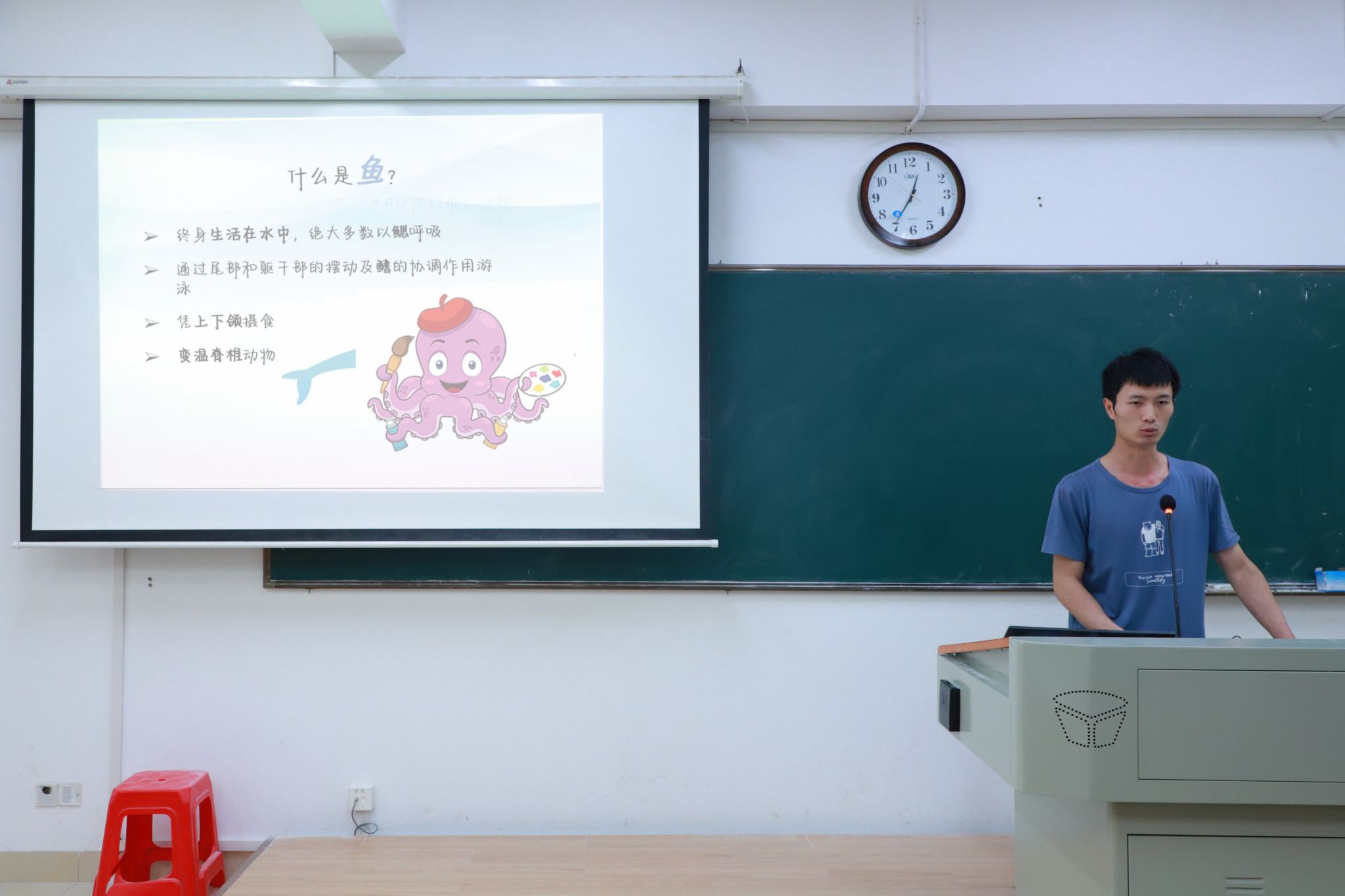 此次讲堂包括鱼类演化介绍、鱼类特征讲解和鱼类价值介绍三个部分。谭益水以鱼类的演化展开讲解,他介绍地球上最早的鱼出现在4.6亿年以前,是历史上首次出现的脊椎动物。他借助视频展示鱼类的特征,从鱼类的身形、体表、生活环境、生活习性等方面向同学们进一步说明鱼类主要特征,并讲解器官对鱼类日常生活的作用,如鱼类用鳃呼吸、用鳍运动并维持身体平衡、用侧线感知周围的水流和物体以及用鱼鳔调节身体的密度。同时,谭益水以提问的方式与同学们进行互动,引导听众思考和查阅相关资料,加深对所听内容的了解。此外,他带领同学们思考鱼类在日常生活中的作用,并向同学们解释鱼肉营养价值对维护人体健康的重要性以及渔业在经济产业发展中的作用,表明鱼类在人类社会中发挥着重要作用。