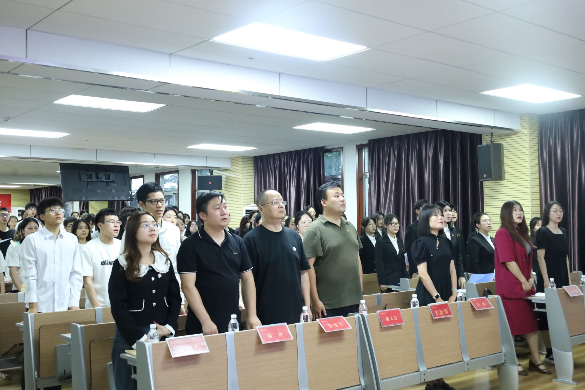 与会人员合唱国歌