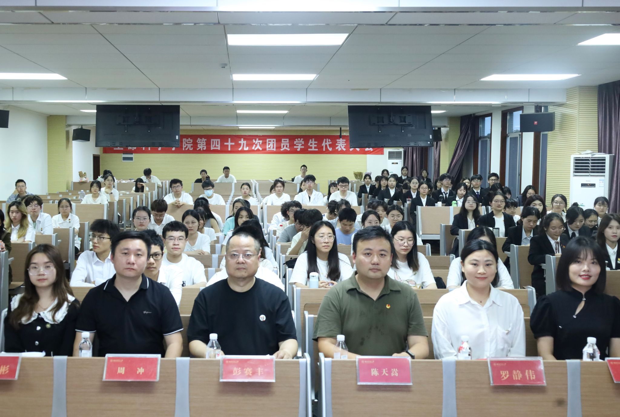 罗静伟作工作报告。院团委青年发展工作部负责人何敏宣读候选人资格审查报告,院员工会主席团成员兼健康服务部负责人陈淑娟宣读监票人、计票人、唱票人名单,院团委组织部负责人邹宛彤宣读选举办法及团学组织委员候选人名单。院团委员工副书记张晰然作第四十八届团委工作报告。院员工会执行主席邱靖雯作第四十八届员工会工作报告。院团委员工副书记兼学社管主任王妍作第二十一届员工社团管理服务中心工作报告。院团委员工副书记兼青传主任冯鑫作第十一届青年传媒中心工作报告。