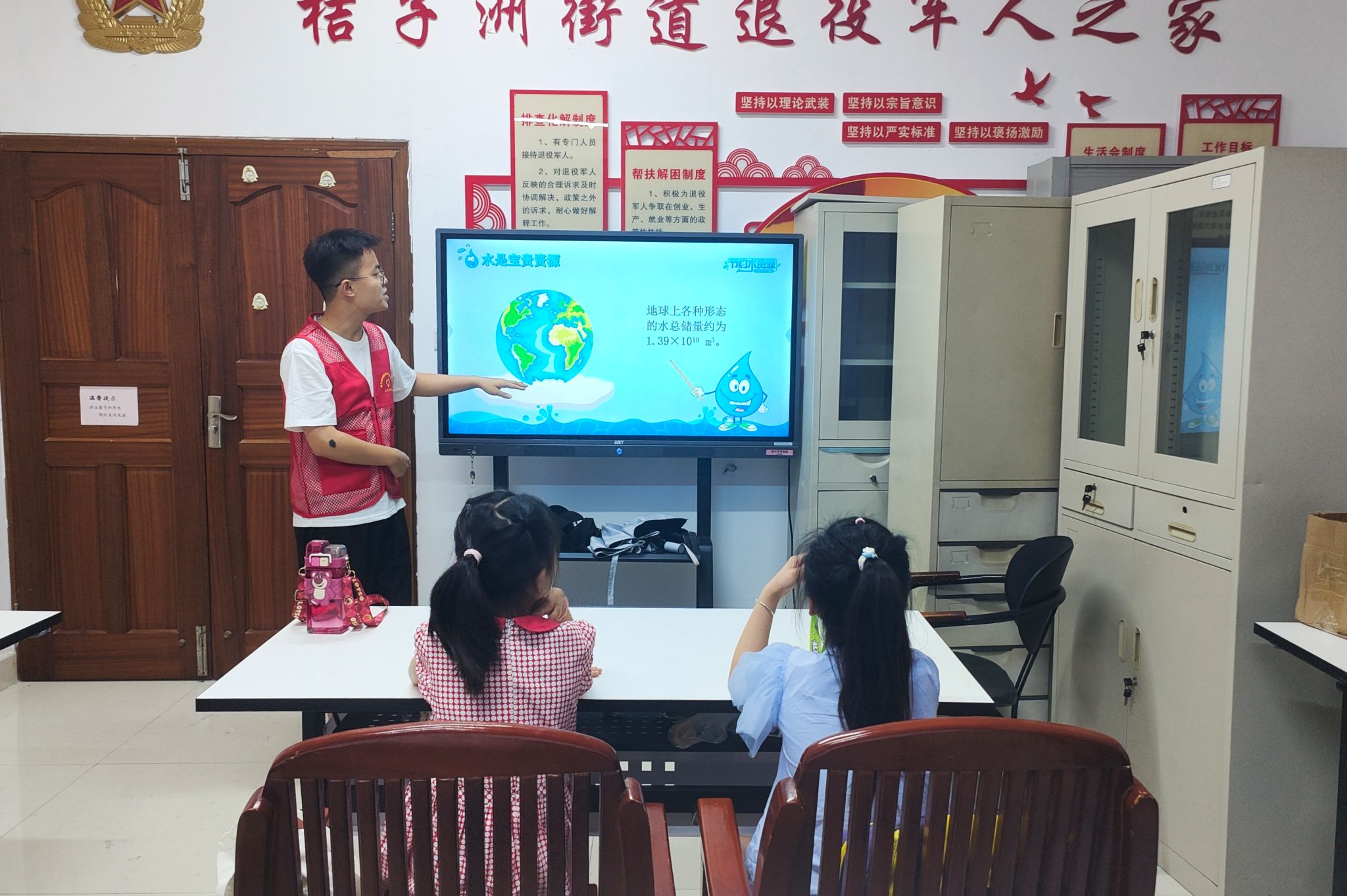 7月10日下午,主讲人从“我国水资源现状”切入节水话题,用切实具体的数据向员工们说明了我国如今所面临的水资源匮乏的现状,引起小朋友们的重视。他引导小朋友们展开了有关南北土地和水资源分布不均的问题探讨。随后,主讲人以图片的形式向大家解释了水污染、水缺乏带给生物和环境的巨大危害,并倡导大家一起用实际行动保护水资源。为提高小朋友们的课程参与度,主讲人邀请小朋友们上台讲述自己家节约用水的方法。此外,主讲人带领小朋友们一起聆听并学唱了两首简单的节水儿歌,帮助孩子们在歌词与旋律中进一步体会到节约用水的必要和益处。