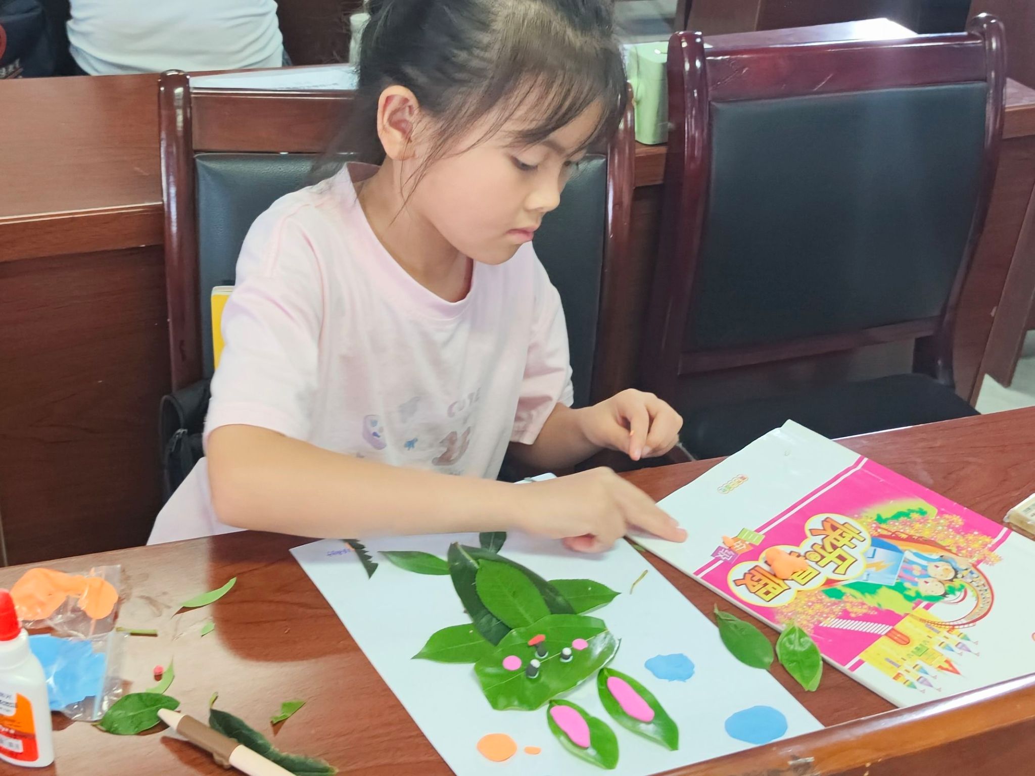 7月9日下午,实践团开展植物画制作课程,主讲人向小朋友们讲解植物叶片的结构、功能以及生长环境等相关知识。随后,在实践团教学组成员的指导下,小朋友们利用收集到的植物叶片和胶水、画笔等相关材料,开始植物画的创作。小朋友们发挥自己的想象力和创造力,将不同形状、颜色的叶片巧妙地组合在一起,形成了一幅幅具有创意的植物画。教学组成员将小朋友们的画作进行展示,并给予表扬与鼓励。