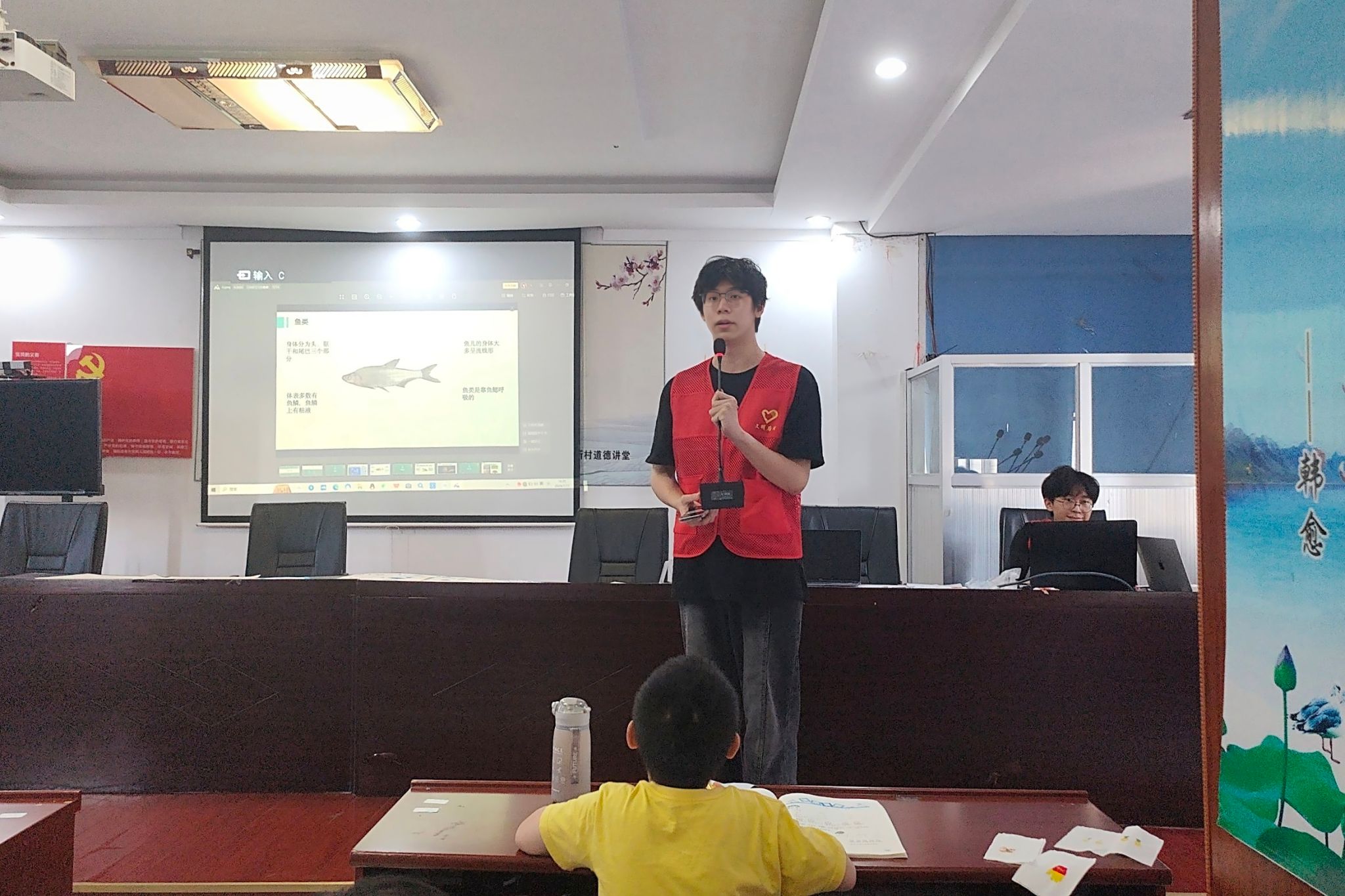 陈贤负责鸟类和哺乳动物相关知识的讲解,他带领小朋友们探索鸟类和哺乳动物的世界。他列举乌鸦、小熊猫、海豹、鲸鱼以及秃鹫等动物图片,让小朋友们根据图片辨认出动物的种类和名字。随后,他借助科普视频,为小朋友展示鸟类和哺乳动物的独特习性、形态特征及其分布地点。小朋友们表示课堂答问的互动形式帮助他们有效巩固了鸟类和哺乳动物共同特点等知识。