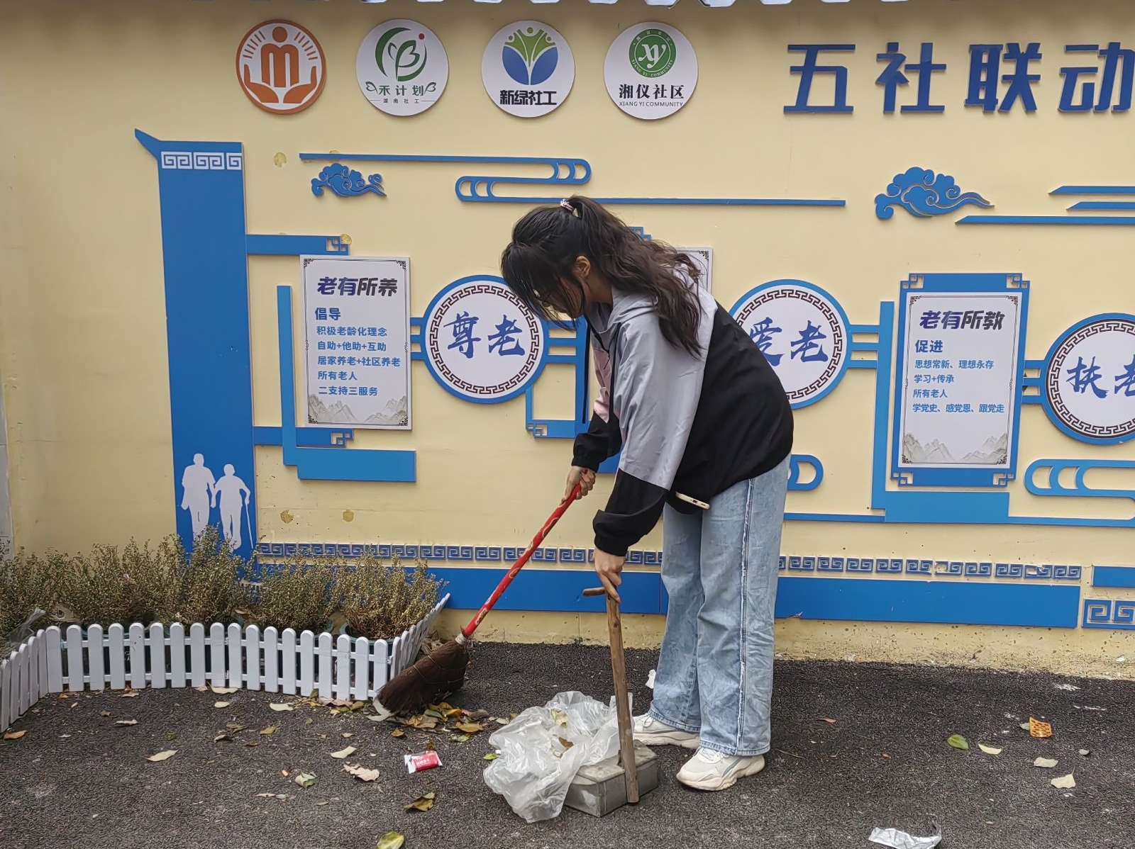 志愿者打扫社区