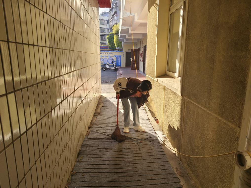 活动负责人提前与社工规划好对接议程,交流活动相关事宜,与志愿者进行沟通,并由社工带领志愿者完成社区各项工作。志愿者们加入社区服务队伍,帮助社区开展服务工作,自觉完成养老院值班值岗的日常任务,保持养老院公共区域的整洁干净。随后,志愿者们与来访老人沟通交流,记录并转达老人需求,除日常工作外,志愿者们还完成了社区走访、社区中心维护等多项社区工作。