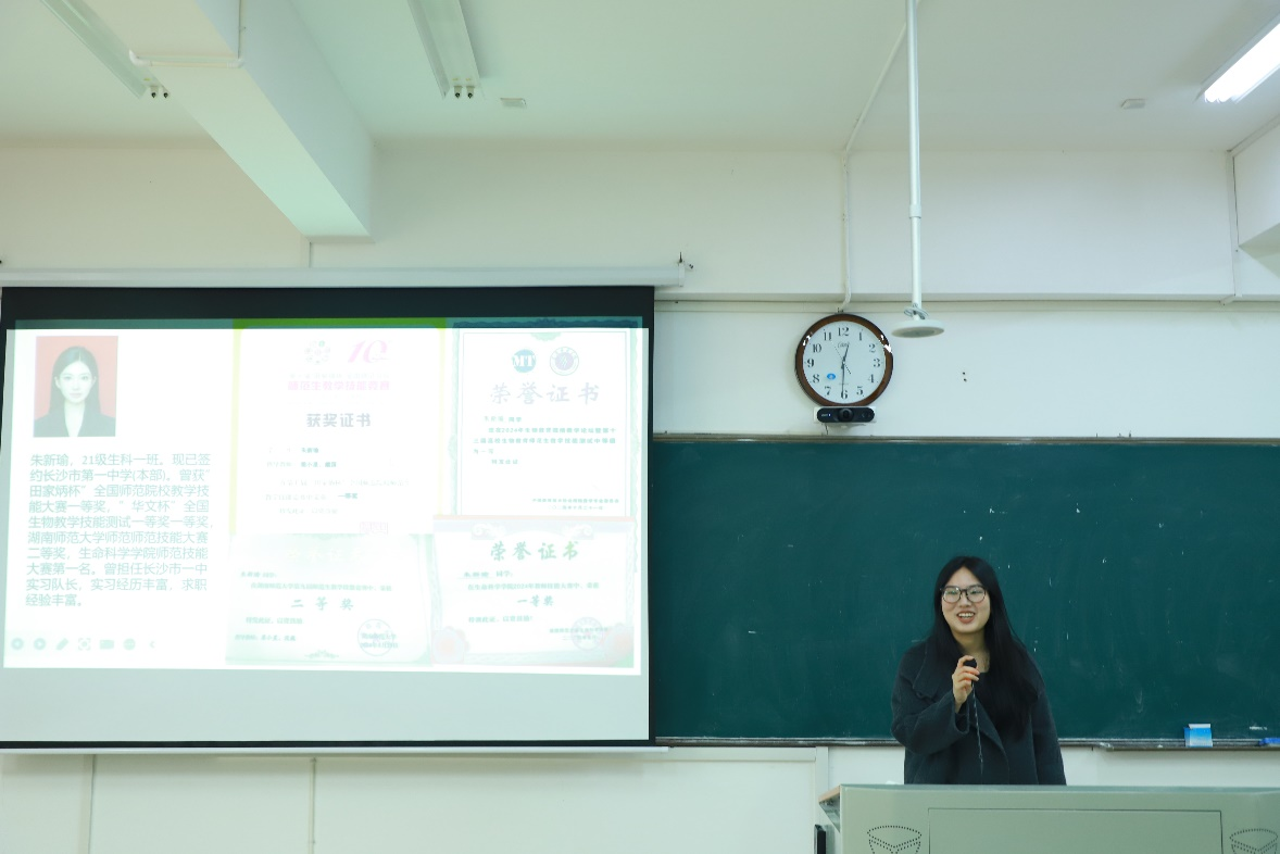(通讯员 李一帆 罗斌)3月20日中午,beats365官方网站(以下简称“生科院”)团委青年创新创业服务中心于生科院3号楼B10教室举办“师途逐梦引前路,就业解惑启新篇”精勤讲堂主题讲座。湖南师范老员工科院2021级生科一班朱新瑜担任此次讲堂主讲人,生科院团委青创中心干事陈奕豪担任主持人。生科院2022级、2023级、2024级部分同学参加此次讲座。