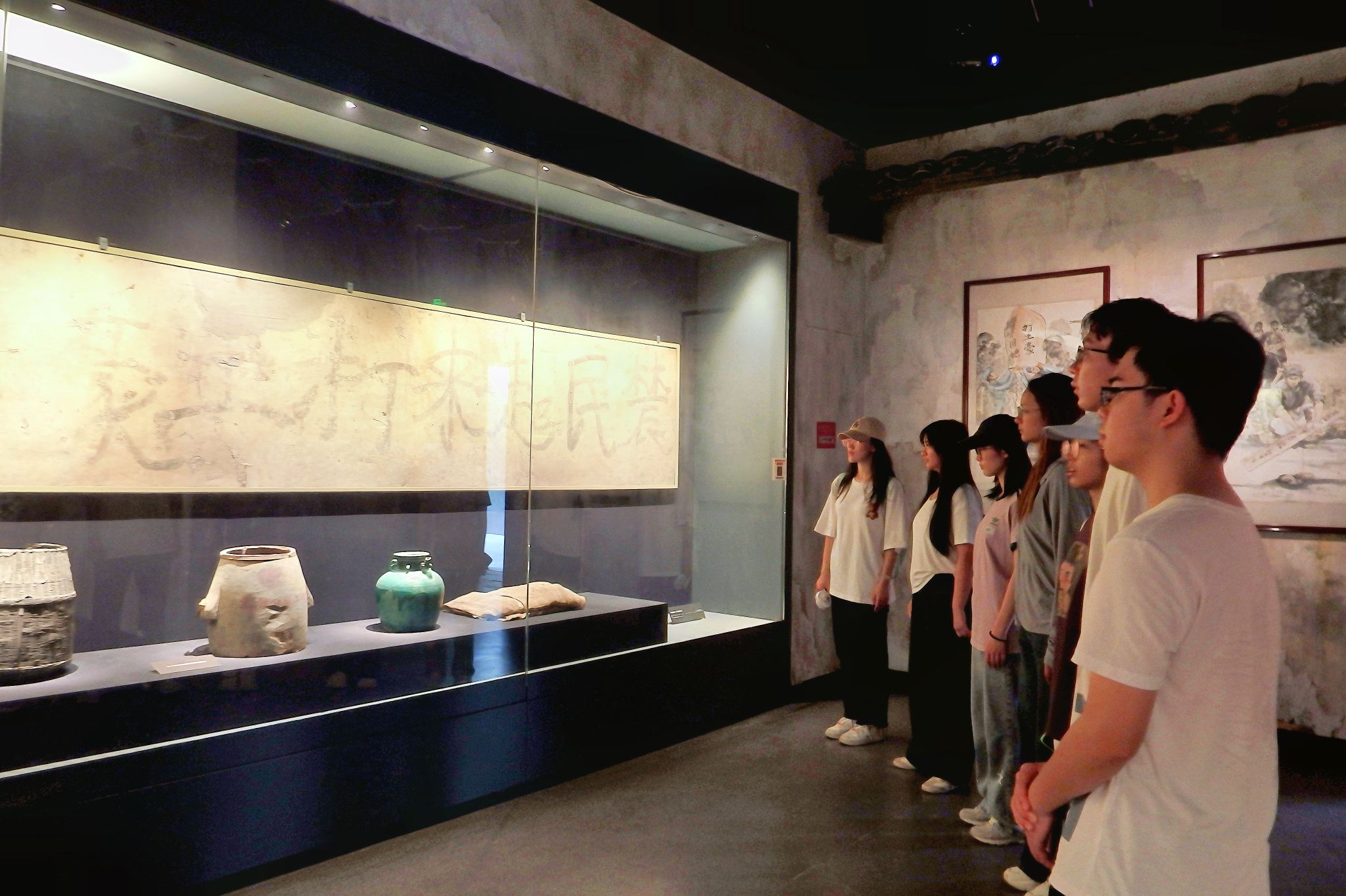 实践团前往红军标语博物馆并采访博物馆讲解员,讲解员为成员们介绍博物馆的设立背景、陈列展品及历史意义。炎陵红军标语博物馆历史悠久,承载着丰富的红色内涵。在数字展区,成员们驻足感受红色历史与数字文化交织融合的魅力。馆中名为“红色印记”的巨幅雕塑,刻画出当年工农红军开展斗争的革命场景。在洣泉书院里,实践团参观传统文化建筑,一览文脉传承的脉络,在毛泽东旧居的场景中触摸红色历史文化记忆。同时,实践团成员积交流实地参观的感受,并于结束后进行合影留念。
