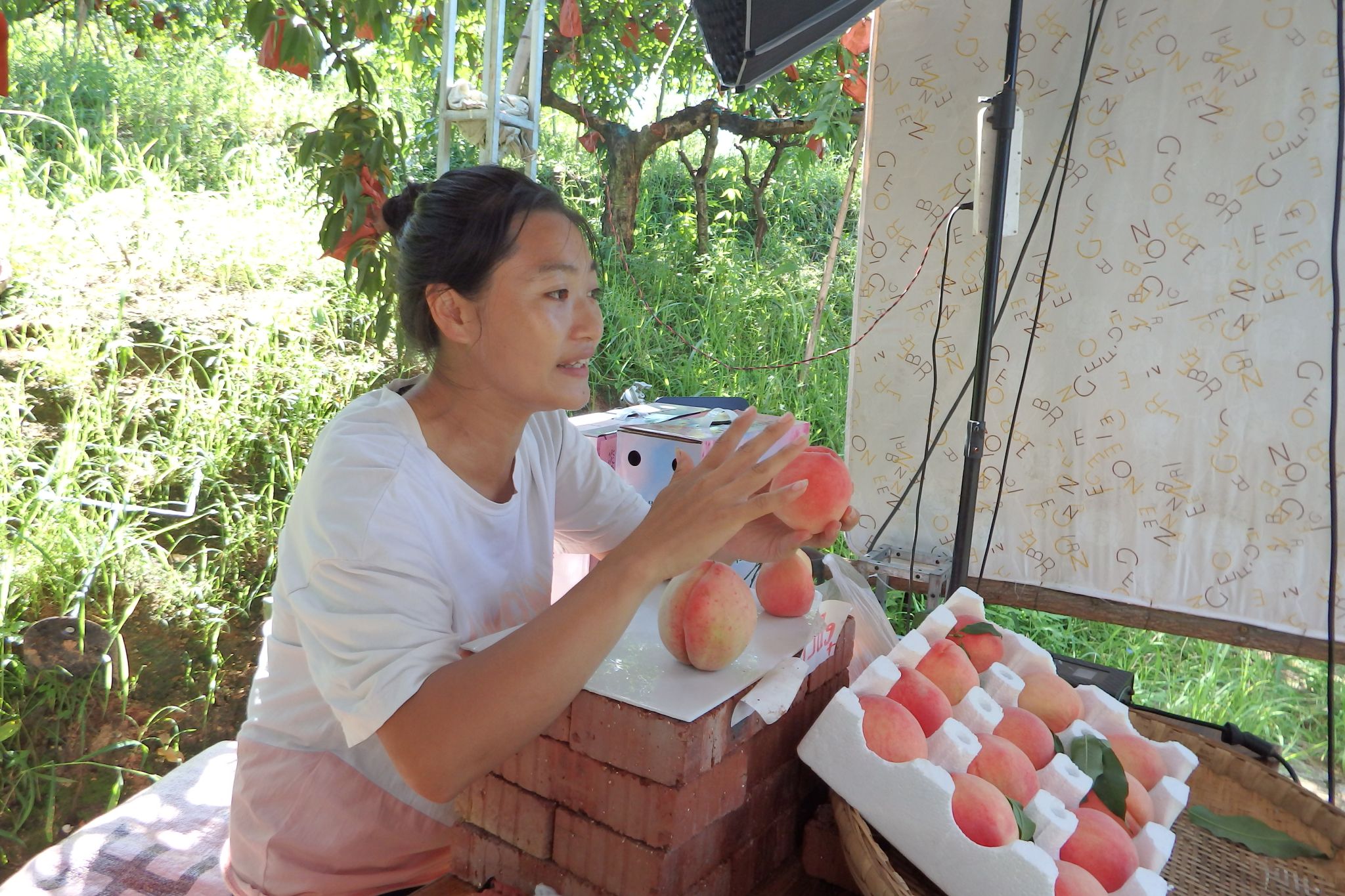种植基地直播售卖炎陵黄桃
