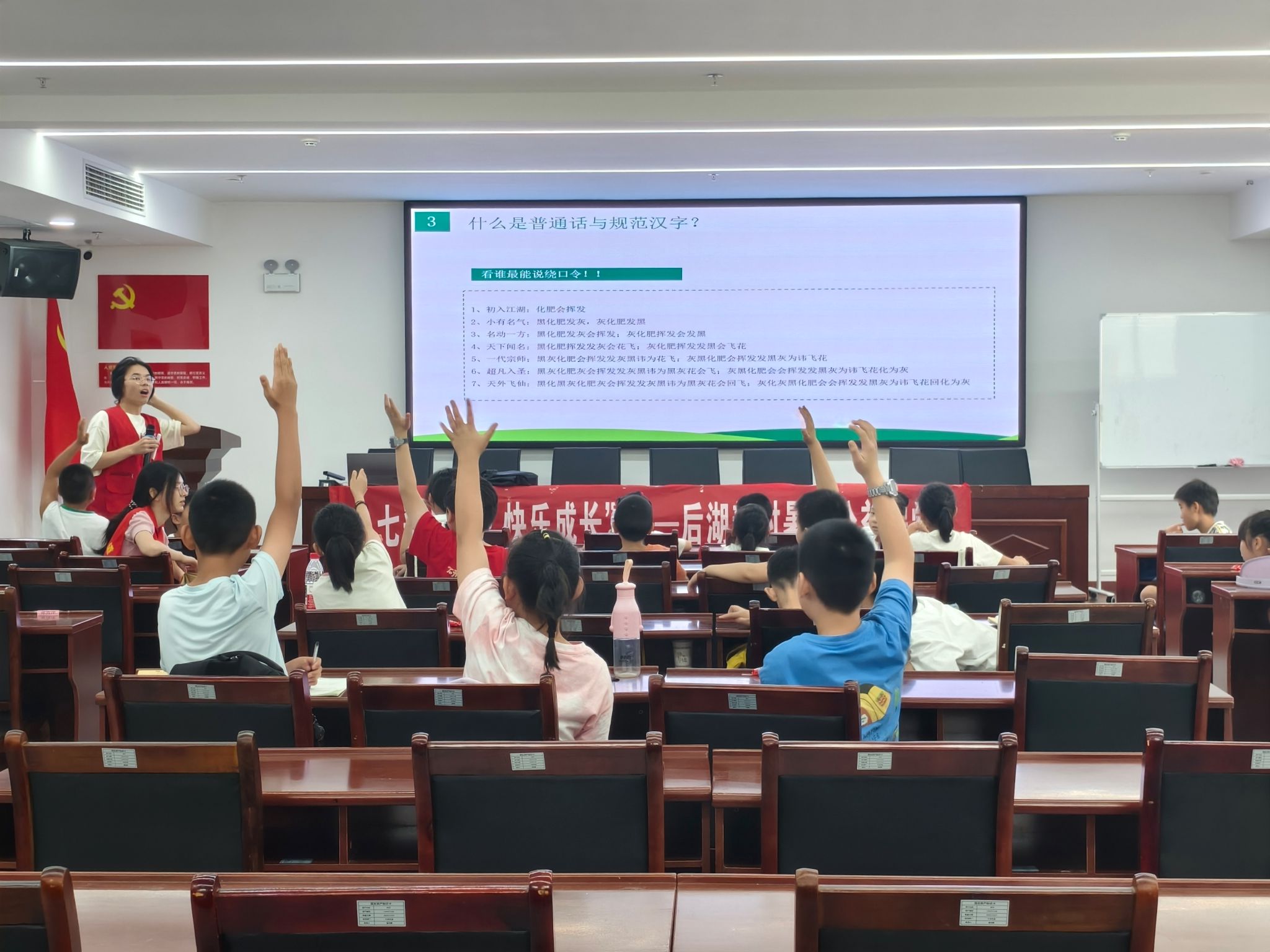 (通讯员 唐洁 刘江南)7月11日下午,生科院“湘畔守望”赴后湖新村暑期社会调研团于后湖新村党群服务中心开展推广普通话,写好规范字的课程。实践团成员罗斌、韦小妹担任此次课堂的主讲人。生科院团委暑期实践团部分成员参加此次活动。