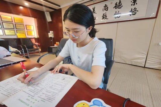 实践团成员为员工批改作业