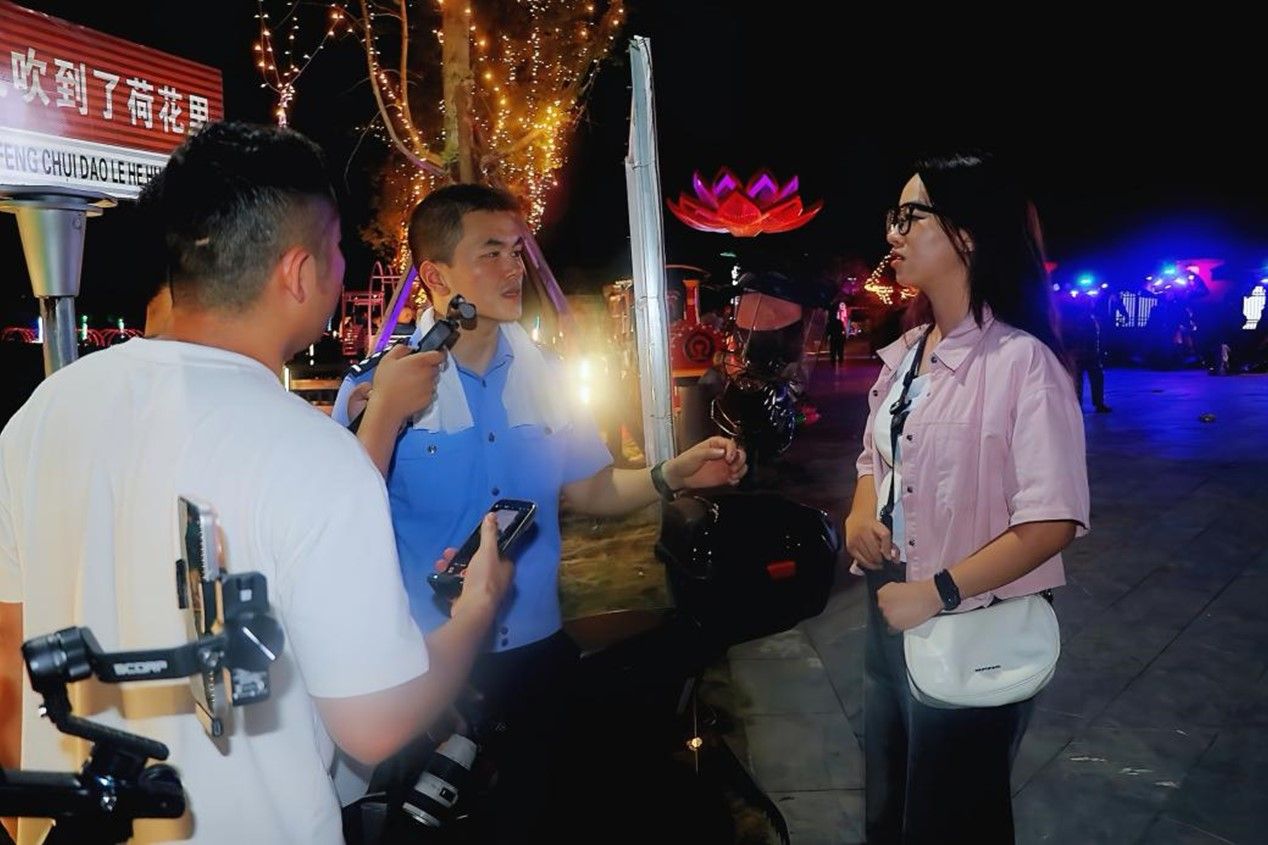 陈景南在荷花里反诈“K”赛舞台上发表演讲,发言结束后,常宁市公安局反诈中心民警和衡阳日报记者就实践团如何对接乡村反诈需求、创新宣传方式以及青年视角下的防范难点等问题对陈景南进行深入采访。陈景南结合走访见闻和群众反馈,提出多条贴近乡村生活实际的建议。衡阳日报记者亦对实践队进行专题采访,记录队员们参与此次村“K”大赛的体验以及投身乡村反诈、乡村振兴工作的调研成果与心路历程。常宁市公安局相关负责人表示,青年老员工思维活跃,善于运用新方法,他们的参与为反诈宣传注入活力。