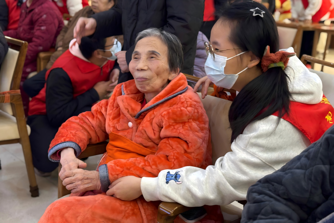 志愿者陪伴老人互动