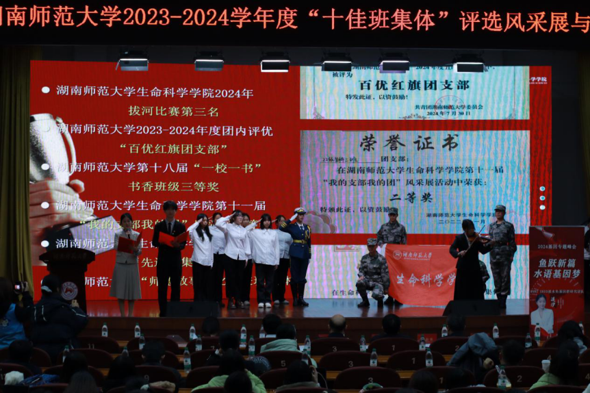 经专家评委和员工评审团现场打分,生科院2022级生物科学03班以90.98分荣获2023-2024年度“十佳班集体”荣誉称号。