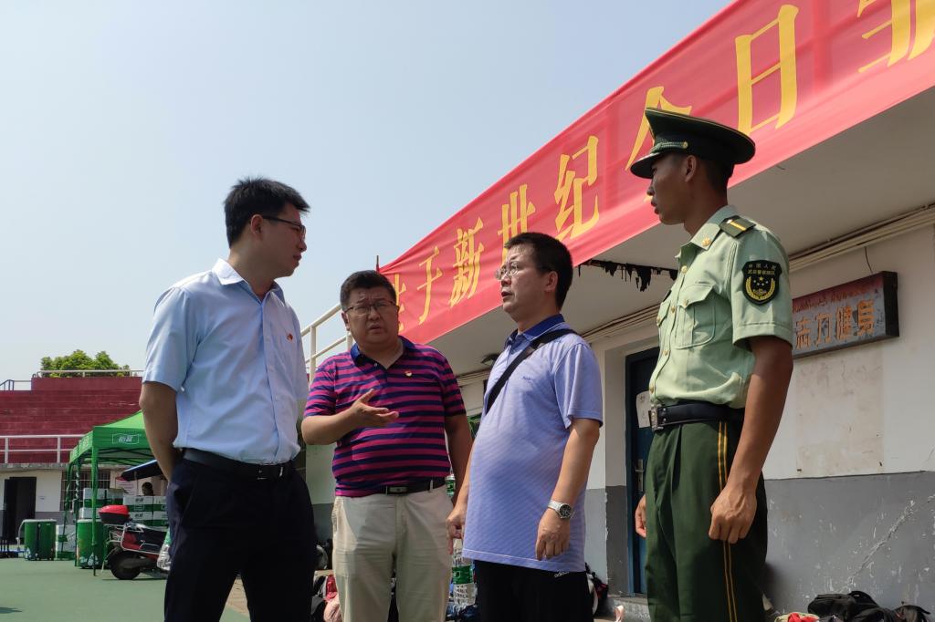 当陈宇一行来到田径场时,新生正在训练。陈宇慰问了新生,并向生科院2019级新生军训总教官符卓肖了解了军训情况及军训进度。陈宇肯定了教官们的训练成果,并指出教官们要合理安排军训任务,切勿冒进,避免松懈,各项训练应做到循序渐进、松弛有度。