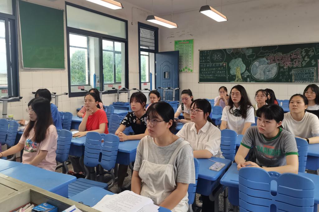 刘杰为暑期实践团成员讲解支教的注意事项,并承诺在支教期间给成员们提供活动器材和教学上的帮助。谌凤仪为各年级支教团成员安排具体工作,激励成员们认真备课,并希望这次活动给孩子们带来一个与众不同的暑假体验。