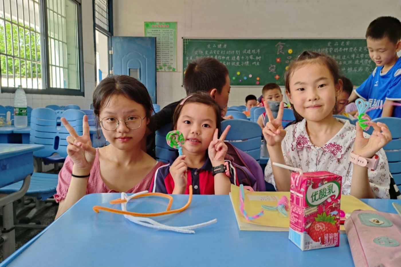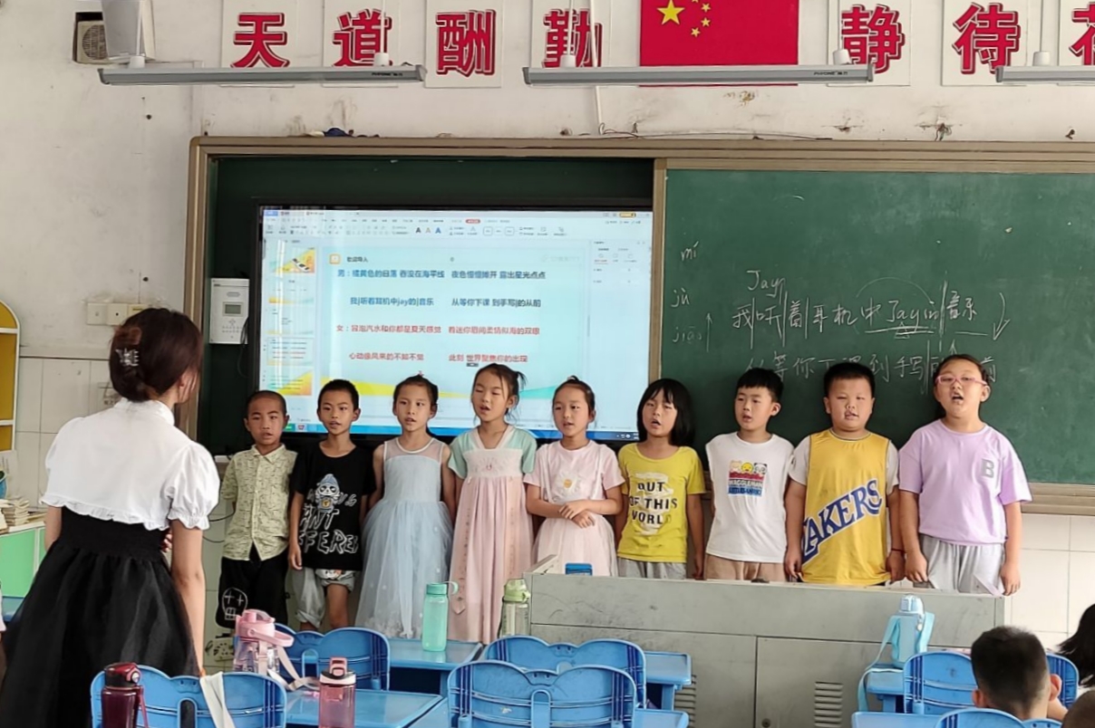 此次夏令营在五个年级同时开展,课程分为早读、活动课、作业辅导课三部分,每个年级都开设有相关特色课程。一年级开展个人名片制作课程,员工们在老师和同学的帮助下,创作出属于自己的名片;二年级开展多彩扭扭棒课程,员工们用自己的奇思妙想,制作出各种各样的扭扭棒作品;三年级开展趣味贴画课程,员工们根据自己的想象,将普通的卡纸揉搓剪贴,创造出一幅幅多彩的画;四年级开展听歌识曲课程,员工们在课堂上举手抢答;五年级开展创意蜡笔画课程,员工们绘制蜡笔画,并写上了对老师的祝福。