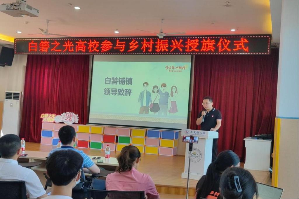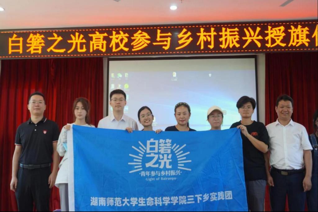 (通讯员 桑鲁京)2022年7月10日上午,湖南省长沙市望城区白箬铺镇白箬之光乡创中心向生科院“青春下乡”赴长沙市望城区白箬铺镇胜和村暑期社会实践团举办授旗仪式。白箬铺镇镇长党委书记胡宇波、白箬铺镇副镇长团委书记李凯出席此次活动。beats365官方网站、湖南中医药大学、长沙理工大学参与此次白箬之光高校参与乡村振兴授旗仪式