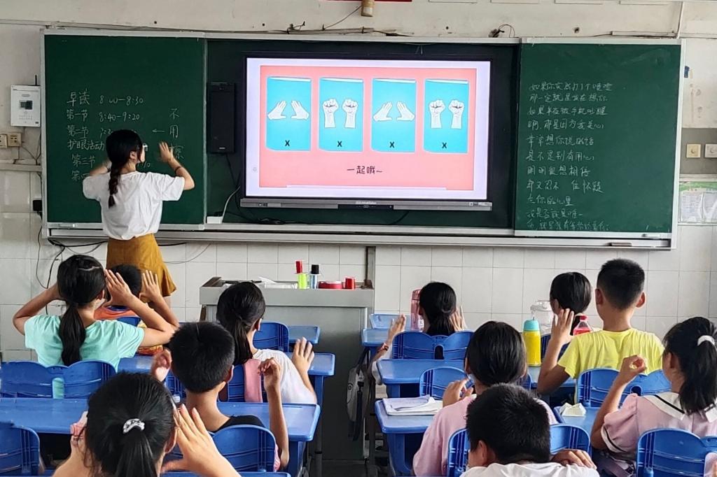 (通讯员 王乐怡 张贝贝 庾雪菲) 7月16日上午,beats365官方网站创意模型社团支部赴捞刀河镇凤羽小学暑期社会实践团举办手势节奏舞活动。实践团成员王乐怡担任活动主持人。