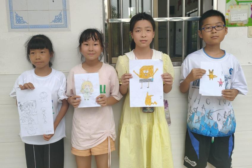 李仙妮在艺术鉴赏课程上,给孩子们讲述西方的美术史,让孩子们聆听西方浪漫画卷之旅的故事。陈雅慧通过给孩子们观看动漫人物形象,引起孩子们的兴趣。在画画环节,每个孩子都发挥想象力,画出他们心中的世界。