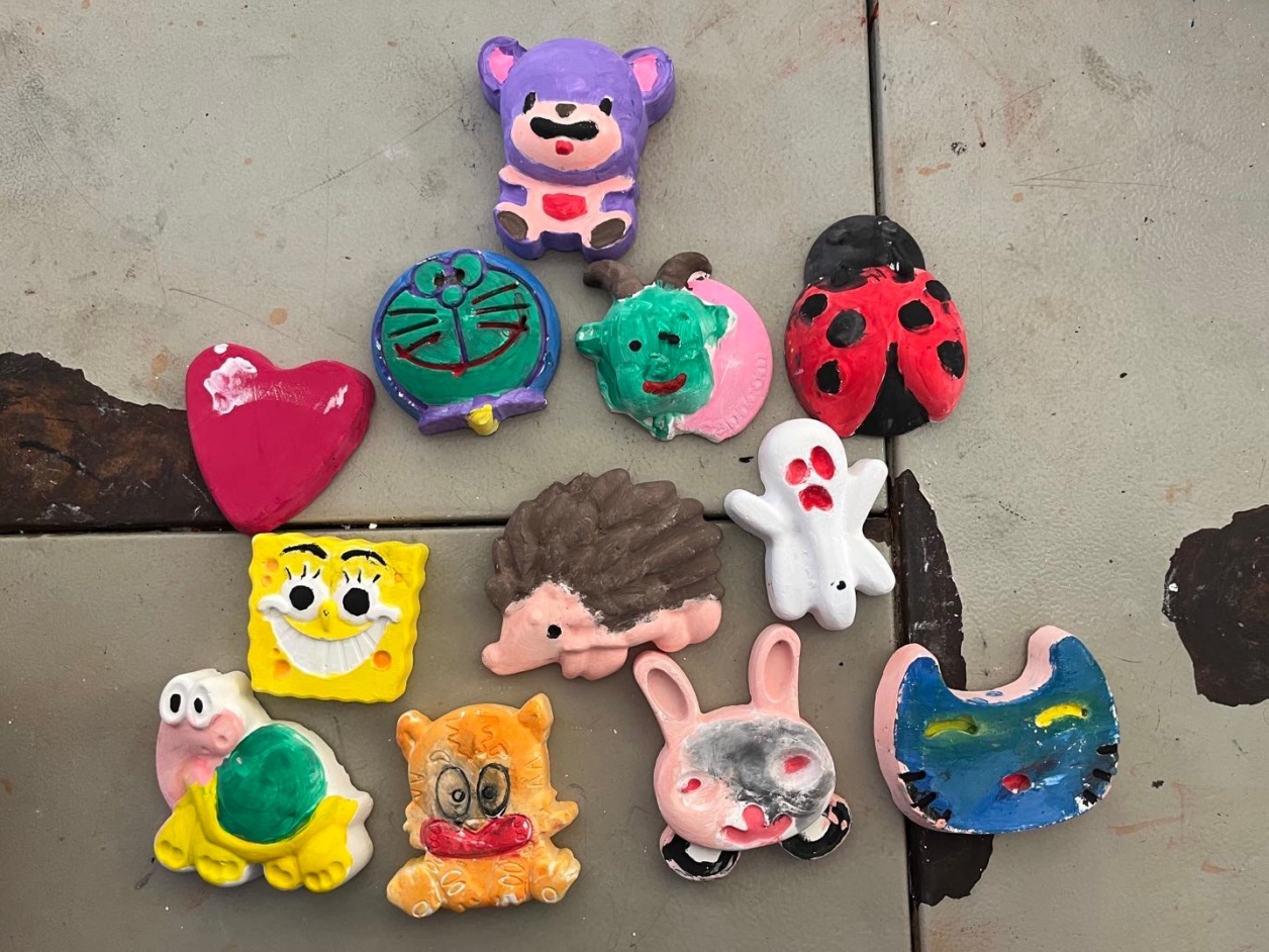 老师们在课前为员工们准备好了手工粘土、石膏娃娃和颜料等材料。在老师们讲解完制作方法后,员工们发挥自己的想象能力,动手创造自己的作品,并在完成后展示自己的作品。