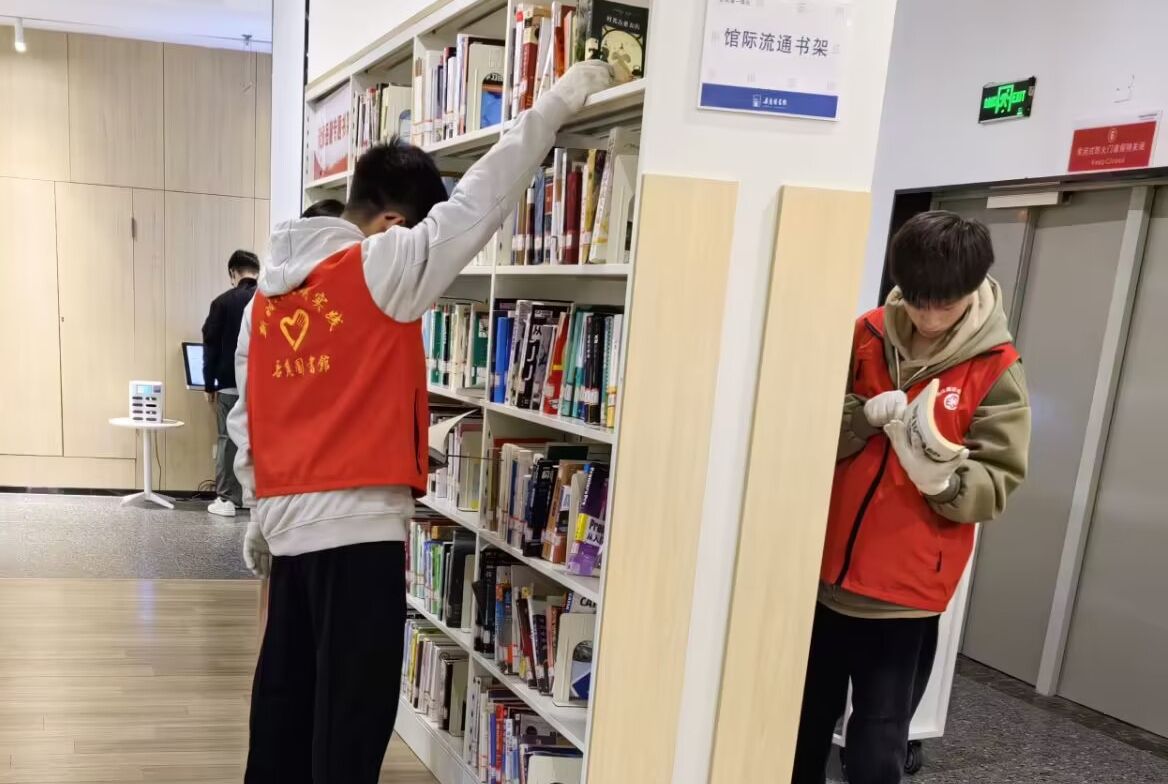 志愿者摆放图书