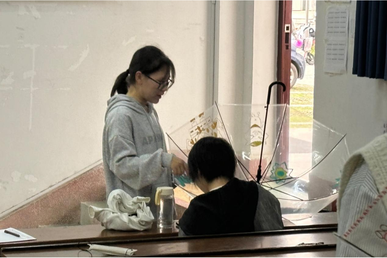 社团成员在透明伞上绘制