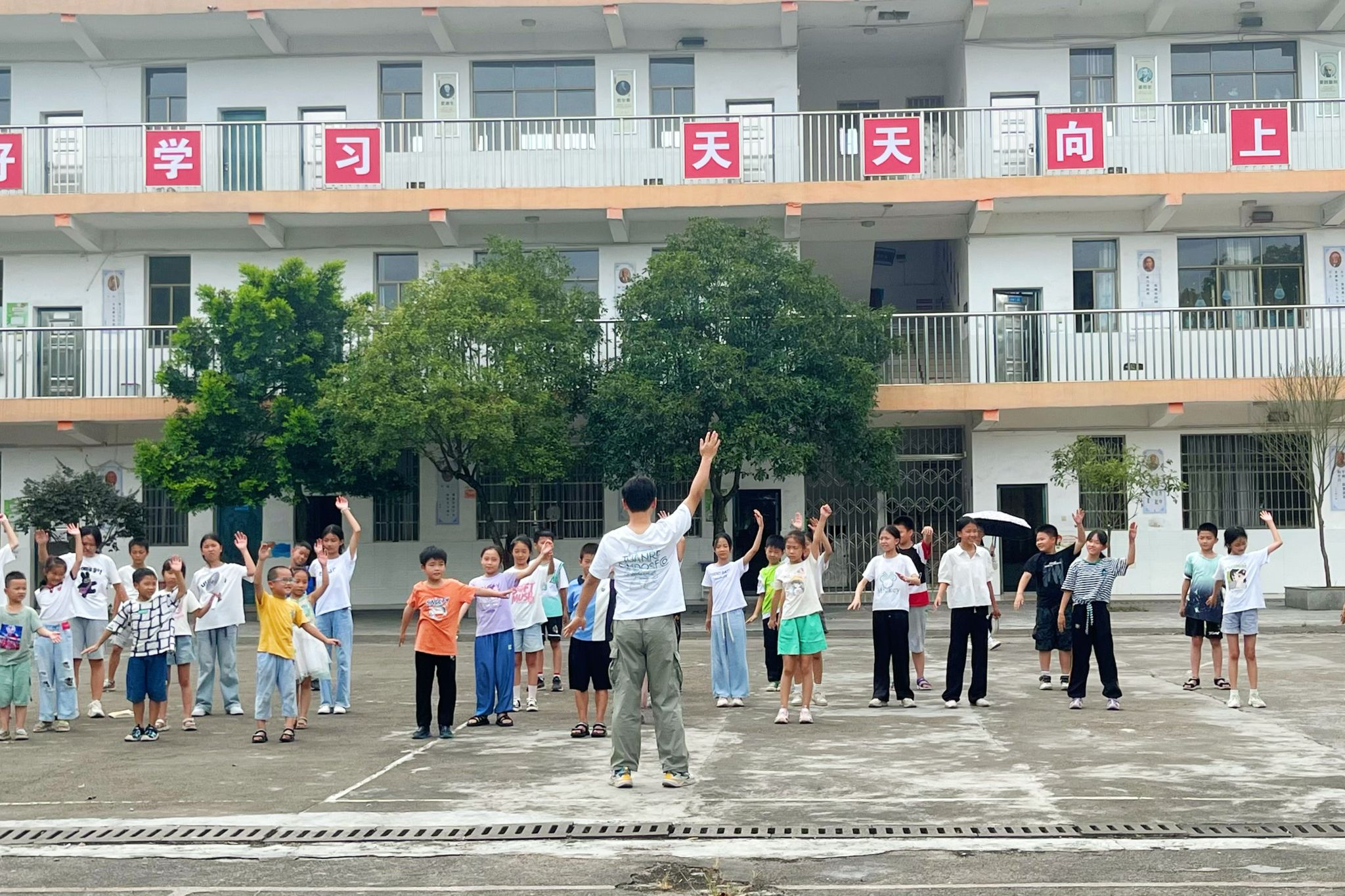 体育课上,志愿者们带领孩子们进行热身运动,师生共同参与了篮球、羽毛球等体育活动。在运动的过程中,孩子们锻炼身体,增强体魄。同时,志愿者们通过讲故事的形式引导孩子们学习和领会合作与竞争精神,体育活动成为师生交流的桥梁,增进彼此之间的了解。