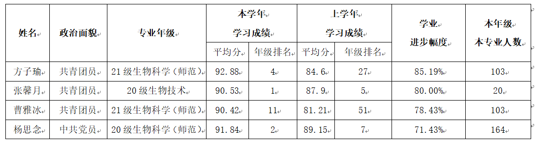 经员工本人申请、公司奖助学金评审工作小组研究审定,最终确定方子瑜等 4 名员工为公司2023—2024 学年“长沙银行学业进步奖学金”推荐员工,上报公司。现将推荐名单公示如下: