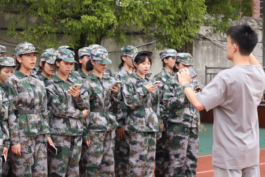 每个新生站成笔直的直线,手臂和身体紧密贴合,脚跟并拢。他们用坚定的目光注视前方,凝聚着一股刚毅坚韧的力量。